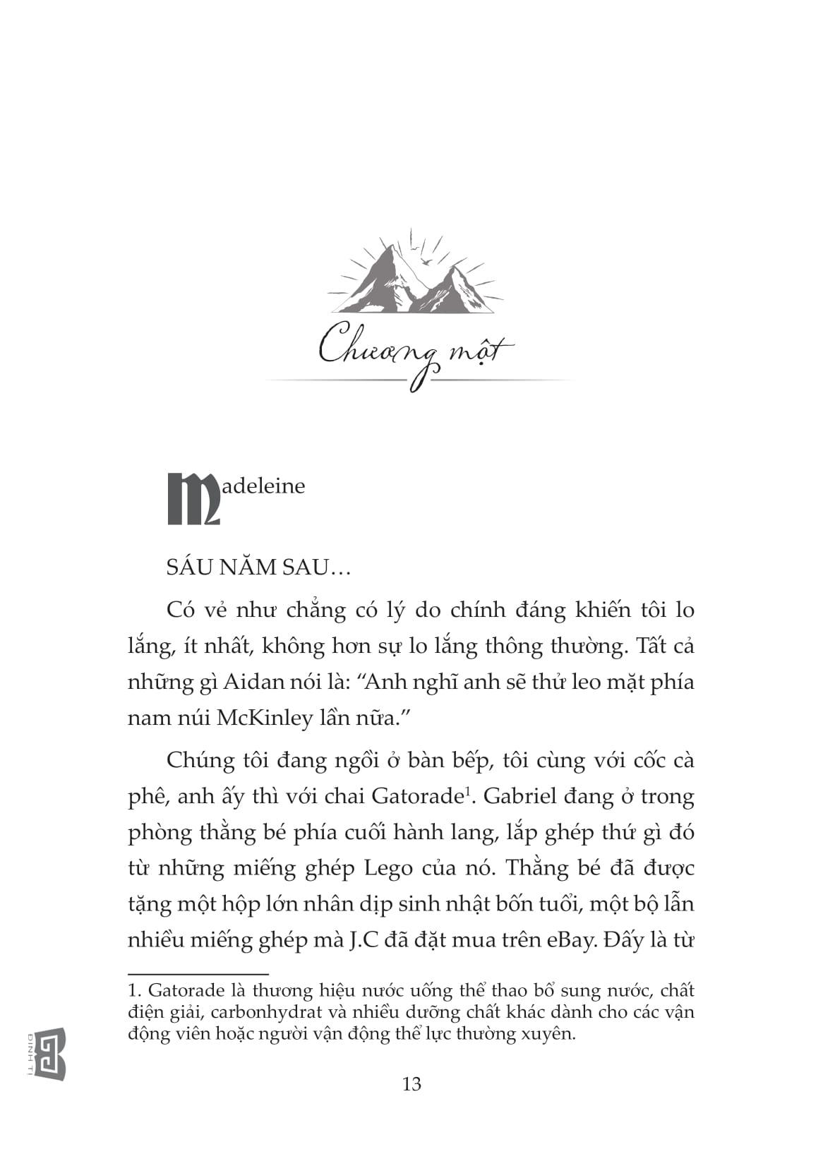 Aidan James là một vận động viên leo núi chuyên nghiệp, chồng của Madeline và cha của bé Gabriel bốn tuổi. Trong một lần thực hiện chuyến thám hiểm trên đỉnh Mc Kinley anh đã gặp tai nạn và ra đi mãi mãi, bỏ lại vợ con cùng lời hứa chắc chắn sẽ quay trở về. Liệu có phép màu nào xảy ra chỉ trong thoáng chốc để lời tạm biệt và xin lỗi của anh đến được với vợ con mình và liệu những người ở lại sẽ làm thế nào để tiếp tục sau khi mất đi người chồng, người cha yêu thương nhất? Cuốn sách đầy tính nhân văn này sẽ lấy được những những cảm xúc thuần khiết nhất và phút suy nghĩ sâu lắng nhất của bất cứ ai đọc nó.