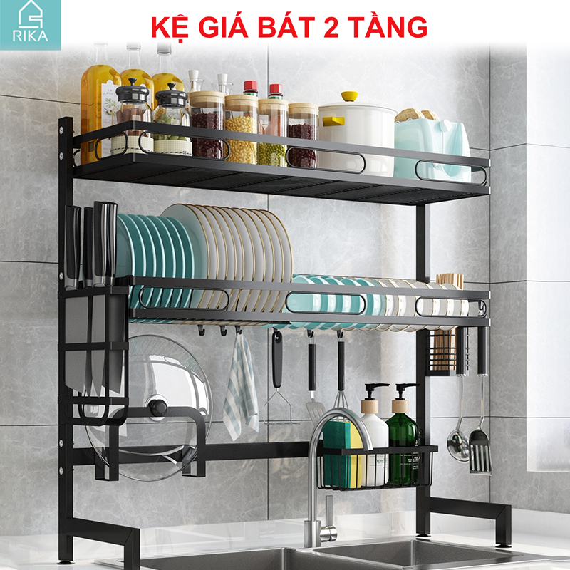 ✨Kệ úp chén bát đĩa đa năng thông minh trên bồn rửa Rika KGB thép carbon không gỉ sơn đen tĩnh điện,1 2 tầng chịu lực cao