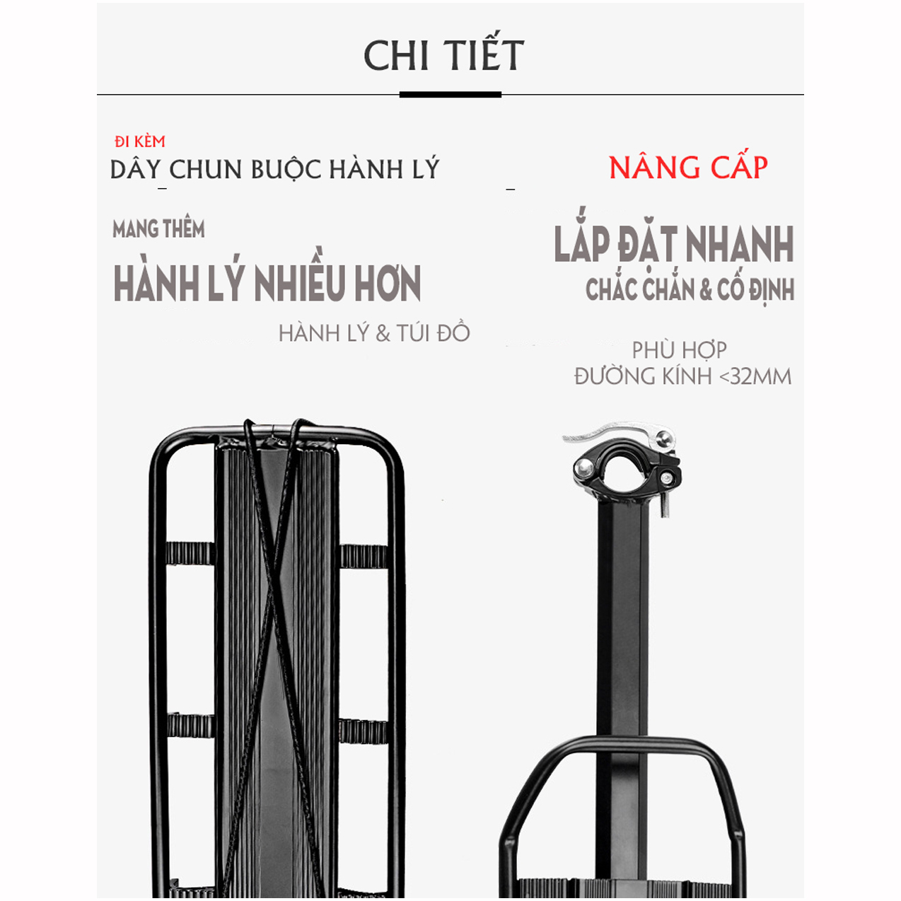 Gác ba ga nhôm gắn xe đạp gắn cốt yên xe đạp
