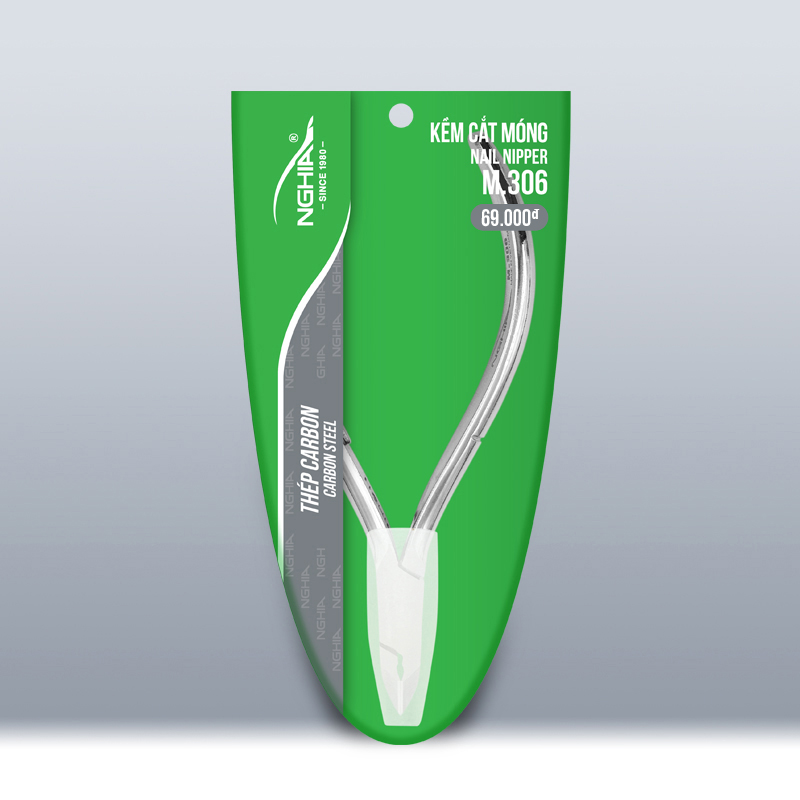 Chất liệu Thép carbon, an toàn cho người dùng.     Màu sắc  Trắng Crom.     Kiểu chống  1 chống .     Kiểu mang 2 mang vuông.      Kích thước  (DxRxC mm) Full Jaw. 109(+/-0.8)x48(+/-0.8)x10.5(+/-0.5)     Trọng lượng  66 gr .     Thiết kế Thiết kế kiểu dáng phù hợp với bàn tay người Châu Á.        Lưỡi kềm sắc mỏng, tinh xảo, độ chính xác cao nên cắt chính xác gọn gàng không làm tổn thương da khi cắt.       Lưỡi kềm bén ngọt, độ bền lâu dài, không cần mài lại khi mua.        Sản phẩm được sản xuất theo chuẩn ISO 9001 - 2015 và kiểm tra chất lượng 100% trước khi đưa ra thị trường.     Thương hiệu Kềm Nghĩa Được người tiêu dùng và thợ chuyên nghiệp ưu tiên lựa chọn hơn 20 năm, đạt được nhiều giải thưởng như: Hàng Việt Nam chất lượng cao, Thương hiệu quốc gia.      Bao bì Bao Silimi.     Mô tả    Sản phẩm kềm cắt móng M.306 của Kềm Nghĩa được xem là một trong những sự lựa chọn hàng đầu của khách hàng. Đây là một trong những sản phẩm bán chạy nhất của Kềm Nghĩa hiện nay. Sản phẩm được chế tác từ chất liệu cao cấp, an toàn cho người sử dụng. Mũi và lưỡi kềm được thiết kế phù hợp để dễ đi vào phần da và làm sạch phía trong móng. Chống kềm và rãnh giúp tự động bung cán kềm ra khi cắt mà không cần các ngón tay đẩy giúp người dùng dễ dàng tự cắt da tại nhà.  Chế độ bảo hành:    Nếu sản phẩm bị lỗi kỹ thuật, quý khách có thể đổi lại tại Showroom của Công ty. Lưu ý sử dụng:    Sản phẩm chỉ dùng để cắt móng tay, chân, không dùng để cắt các vật cứng.  Cách bảo quản sản phẩm :