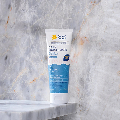 Thành phần chính và công dụng: - Kem Chống Nắng Cancer Council Face Day Moisturizer Dưỡng Ẩm Dành Cho Da Mặt SPF50+ UVA-UVB 75ml là chống nắng phổ rộng cho da mặt hàng ngày giúp