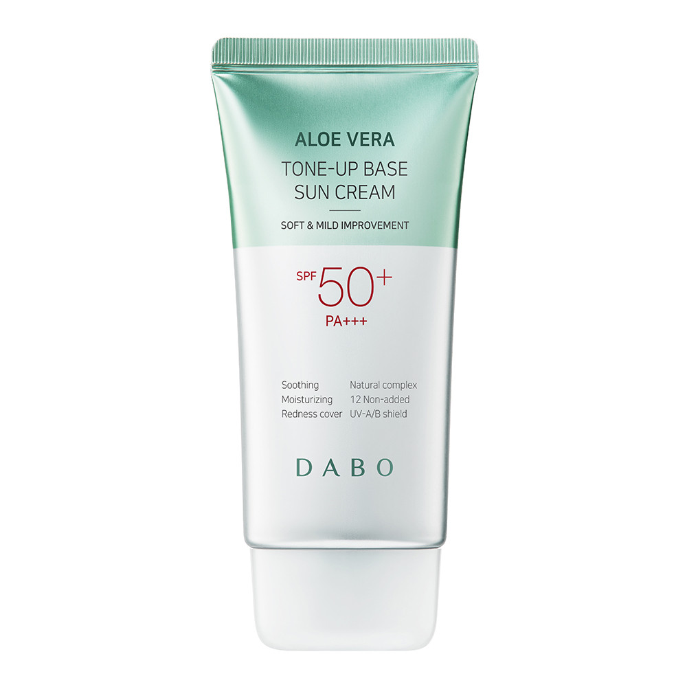 Mua tại TiktokKem chống nắng DABO Aloe Vera Tone Up với chỉ số chống nắng SPF50 PA+++ bảo vệ da khỏi tia UVA/UVB rất hiệu quả, tinh chất Lô hội tinh khiết kết hợp với Trà xanh (Camellia Extract), Rau má (Centella Asiatica)... Giúp cấp ẩm, kháng khuẩn, ngừa mụn, tái tạo tế bào da, cung cấp Vitamin mang lại da trắng hồng, mịn màng và khỏe mạnh. Kem nâng Tone cho lớp Make-Up tự nhiên. KCN sử dụng tốt cả ngoài trời hoặc trong nhà, hiệu quả đặc biệt với da khô.