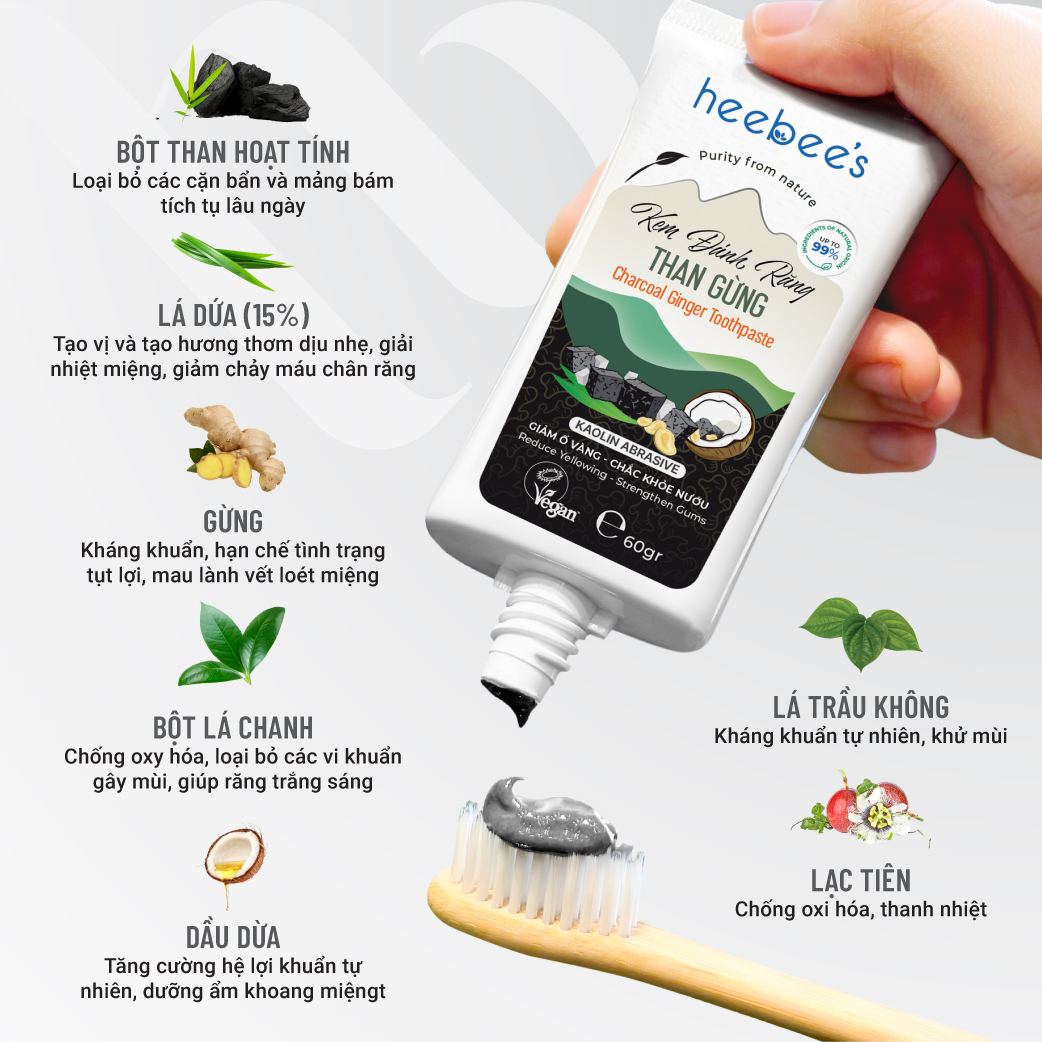 KEM ĐÁNH RĂNG THUẦN CHAY THAN GỪNG HEEBEE'S