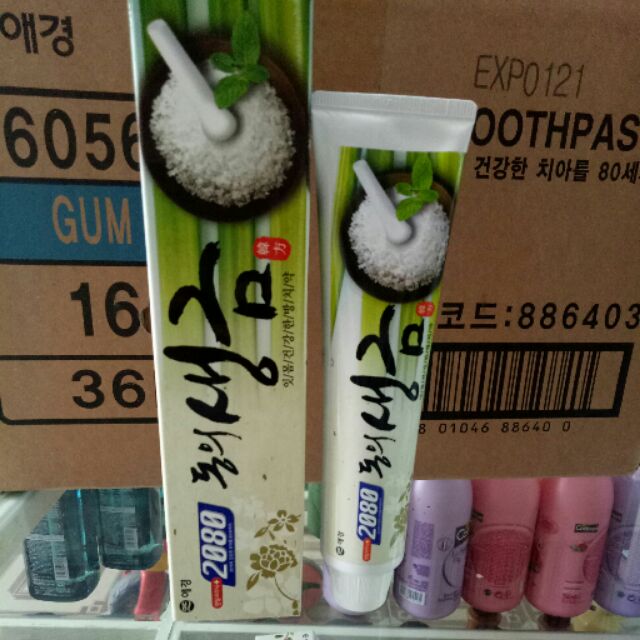 KEM ĐÁNH RĂNG CAO CẤP HÀN QUỐC 2080 DONGEUI(Tinh chất thảo mộc chứa muối)Kem đánh răng thảo mộc chứa muối và các thảo mộc thiên nhiên ngăn chặn tối đa các vi khuẩn gây hại. Loại bỏ các tác nhân gây hôi miệng dưới tác động của tinh chất cây hoa cúc, hương thơm của thảo dược tự nhiên đem lại sự khoan khoái cho hơi thở, bảo vệ răng chắc khoẻ. HDSD: Lấy một lượng kem vừa đủ ra lông bàn chải, sau đó chải răng nhẹ nhàng. Sử dụng tối thiểu 2 lần mỗi ngày (sáng và tối). Bảo quản nơi khô thoáng, tránh ánh nắng trực tiếp. Tránh xa tầm với trẻ em. Rửa sạch bằng nước khi sản phẩm vào mắt. Không gây kích ứng, an toàn cho người sử dụng. Ngừng sử dụng khi thấy dấu hiệu bất thường xảy ra. Thành phần: xem "ingredients" trên sản phẩm. Khối lượng tịnh: 120g.