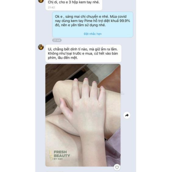 • Kem dưỡng da tay Pime cung cấp độ ẩm tối đa, nhanh chóng làm dịu da