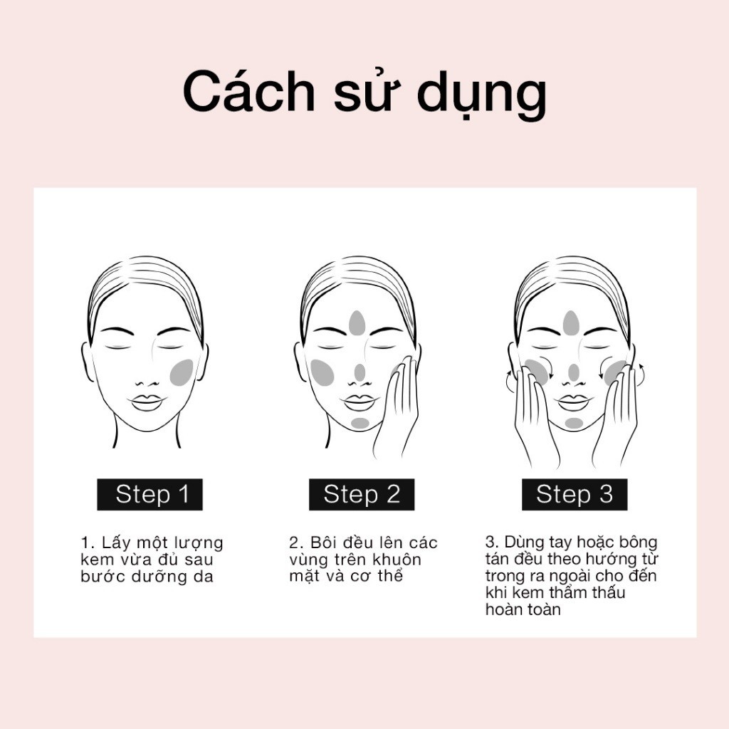 - Mỏng nhẹ, dễ tán đều. Chất kem lỏng nhẹ, không bết dính và thẩm thấu nhanh giúp da thông thoáng.