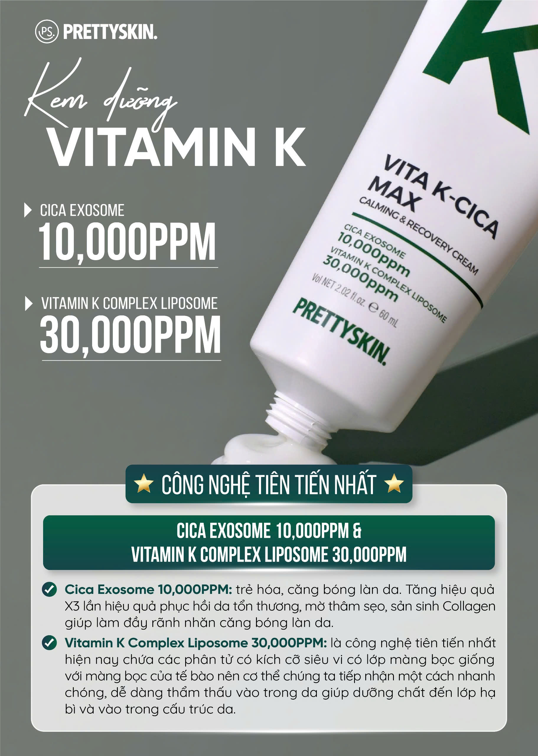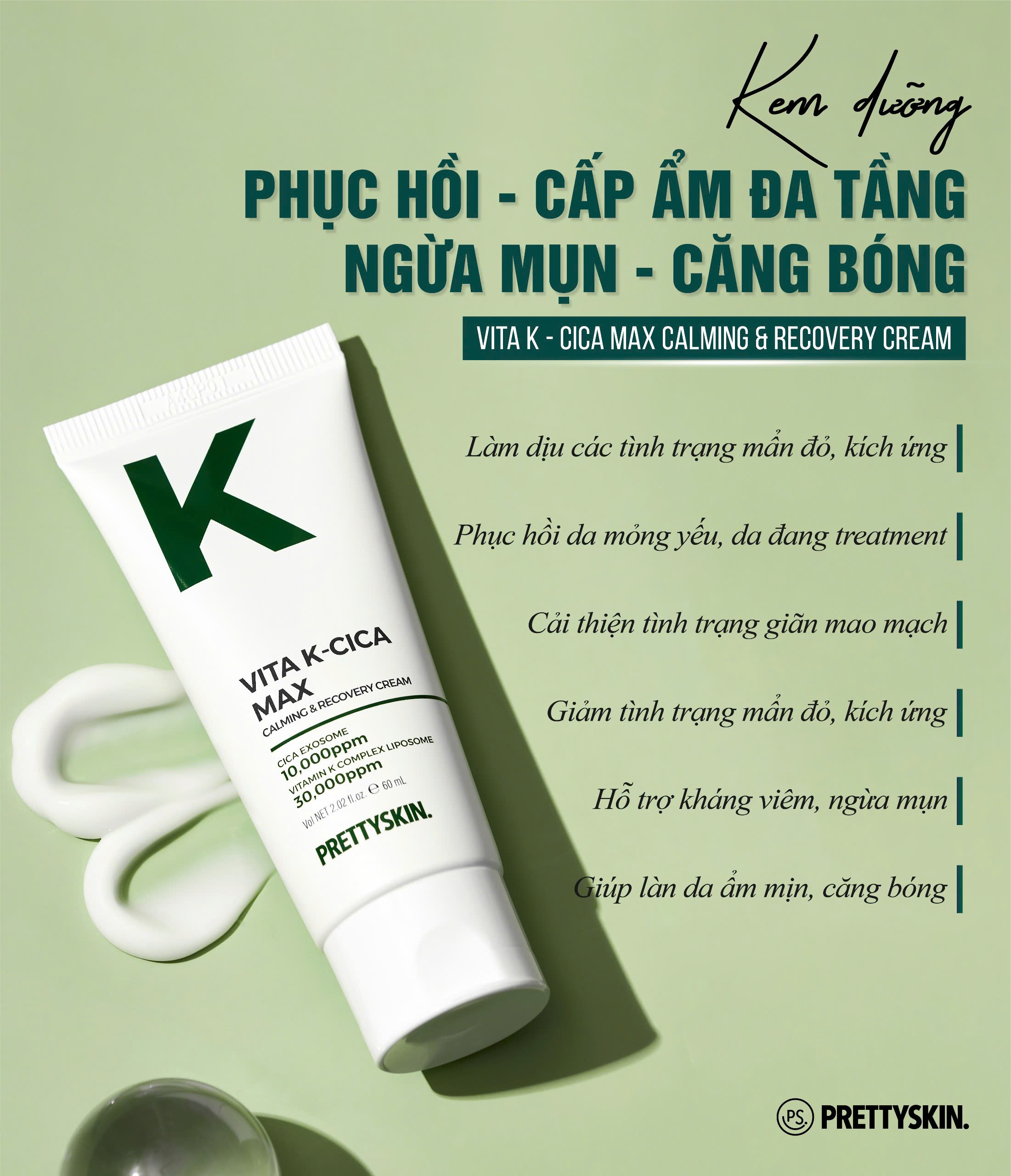 Mua tại TiktokKem dưỡng phục hồi - Cấp ẩm đa tầng - Phục hồi- Căng bóng Vita K Cica Prettyskin 60ml