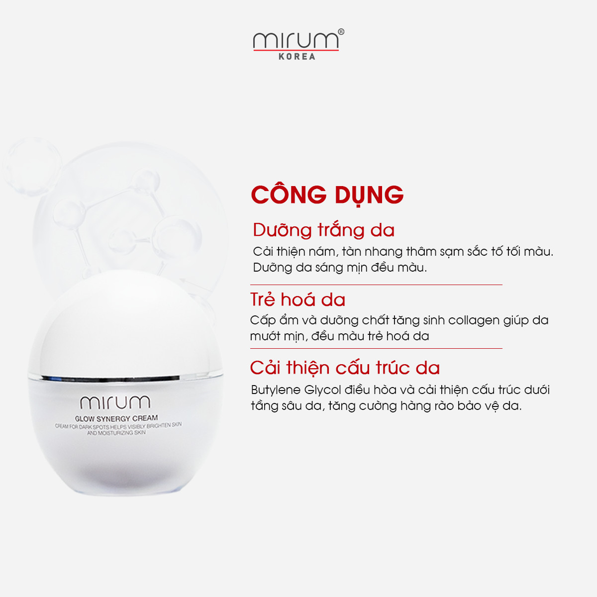 Mua tại TiktokKem dưỡng trắng da, mờ nám & tàn nhang Mirum 55ml– Mirum Glow Synergy Cream THÔNG TIN SẢN PHẨM Kem dưỡng trắng da, mờ nám & tàn nhang Mirum 55ml