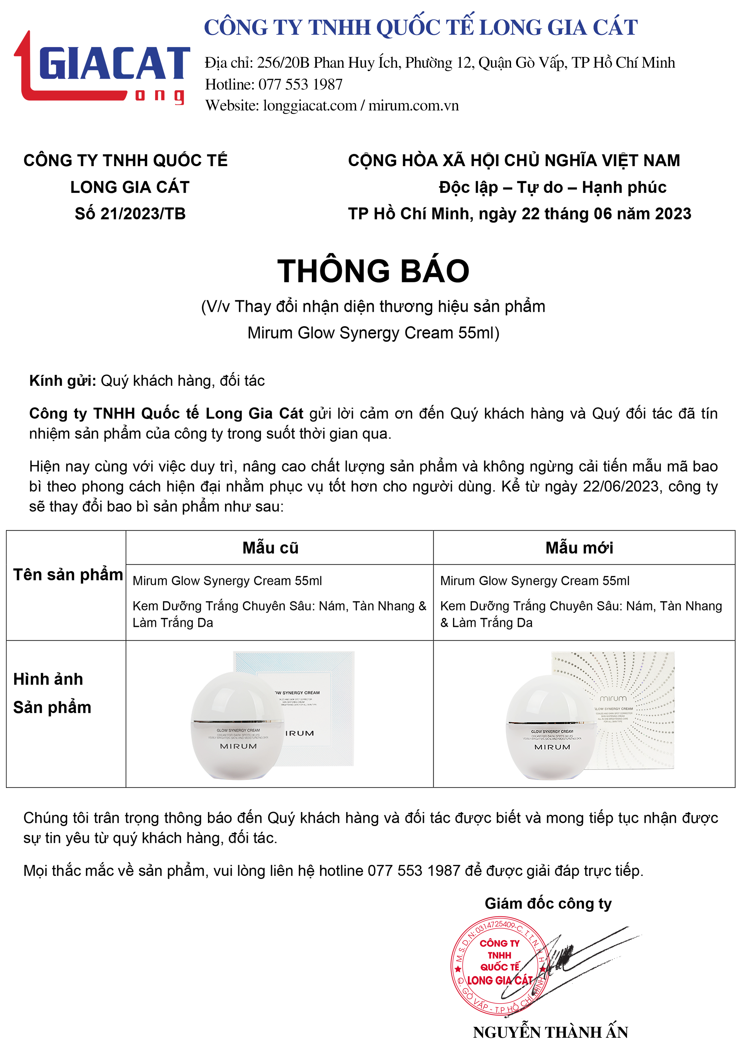 Kem Làm Trắng, Mờ Nám &Tàn Nhang Mirum đã được cấp Phiếu công bố mỹ phẩm số 104381/19/CBMP-QLD của Bộ Y tế và tem bảo hộ chống hàng giả của Bộ Công an nhằm chứng nhận sản phẩm an toàn & hợp pháp tại Việt Nam.