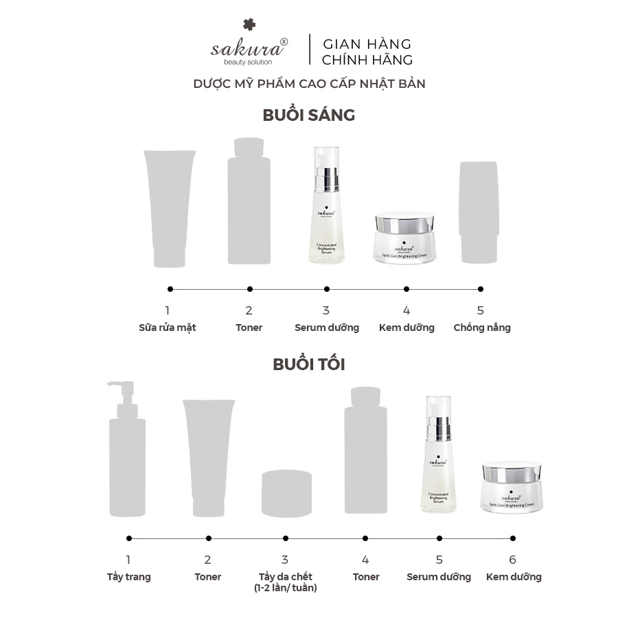 KEM DƯỠNG DA TRẮNG SÁNG SAKURA SPOTS CARE BRIGHTENING CREAM Sở hữu làn da trắng sáng là điều mà các chị em luôn hướng đến. Nhưng rồi, dưới sự tác động của ánh nắng mặt trời khiến làn da chúng ta trở nên nhạy cảm, dễ bị cháy nắng, sạm đen, mẩn đỏ… Bên cạnh đó, đây cũng là nguyên nhân kích thích quá trình sản xuất melanin và làm cho các lớp biểu bì dưới da bị tổn thương. Việc này không chỉ khiến da sạm đen mà còn trở nên khô sần, mất nước, nhanh chóng xuất hiện các dấu hiệu lão hoá, thậm chí ung thư da. Da sạm đen, lão hoá hoá sớm tuy không ảnh hưởng đến tính mạng nhưng lại khiến chị em kém tự tin trong công việc và cuộc sống hằng ngày.  với công thức làm trắng đột phá vượt bậc với thành phần đỉnh cao Tranexamic Acid và chiết xuất cam thảo giúp nuôi dưỡng làn da trắng sáng an toàn, ngăn chặn enzyme tyrosine gây nám và tàn nhang, Ceramide NP và thảo mộc giúp kiểm soát sự hình thành sắc tố, Cung cấp dưỡng chất giúp chống oxy hóa,  giúp làn da trở nên tươi trẻ và săn chắc đồng thời phục hồi làn da bị tổn thương do các tia tử ngoại và các yếu tố môi trường khác. ►Công dụng: