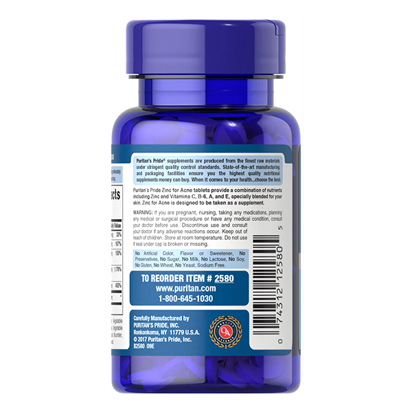 Viên uống kẽm trị mụn Puritan's Pride Zinc For Acne 100 viên của Mỹ