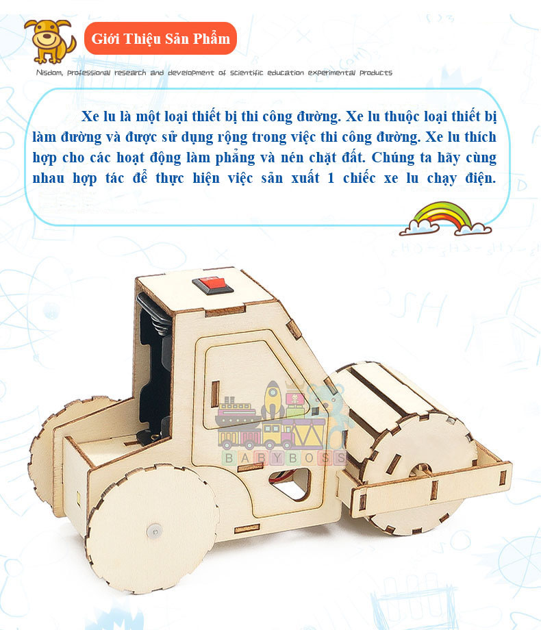 Bộ Đồ Chơi Khoa Học Tự Làm Máy Ủi, Bộ Đồ Chơi Lắp Ghép STEM Mô Hình Máy Ủi, Bộ Đồ Chơi Gỗ Cao Cấp Khoa Học Tự Làm DIY Wood Steam Chất liệu: gỗ,