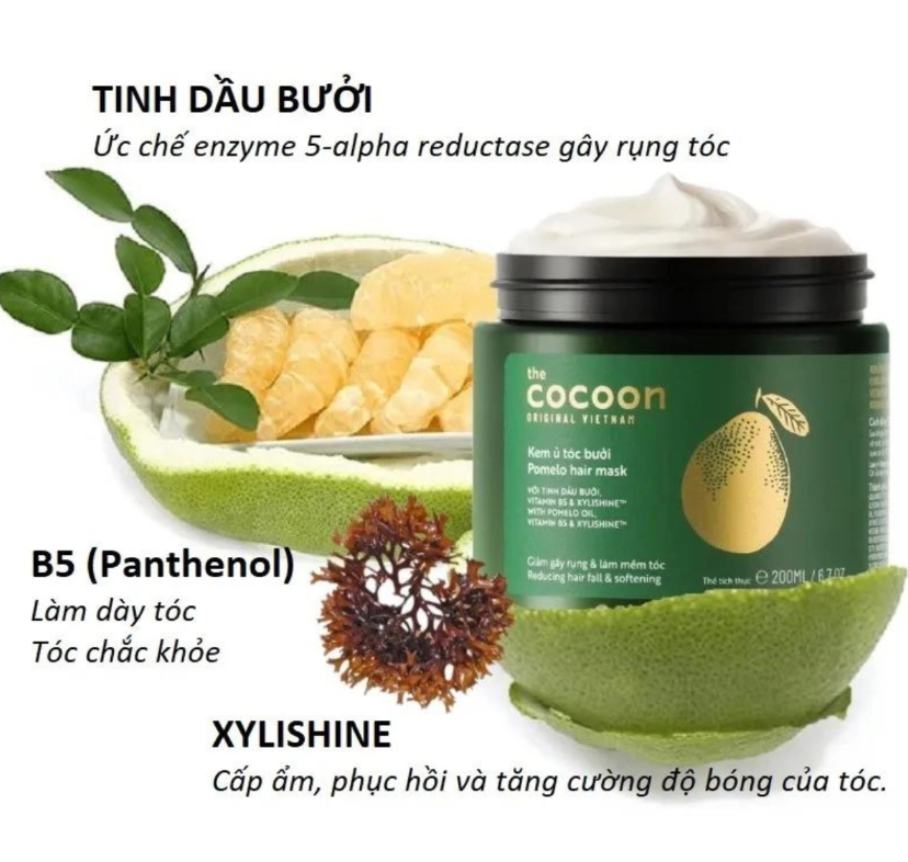Kem ủ tóc với tinh dầu bưởi truyền thống Việt Nam, Vitamin B5 và Xylishine giúp giảm gãy rụng, cung cấp độ ẩm, mang lại sự mềm mại và chắc khoẻ cho sợi tóc. Công