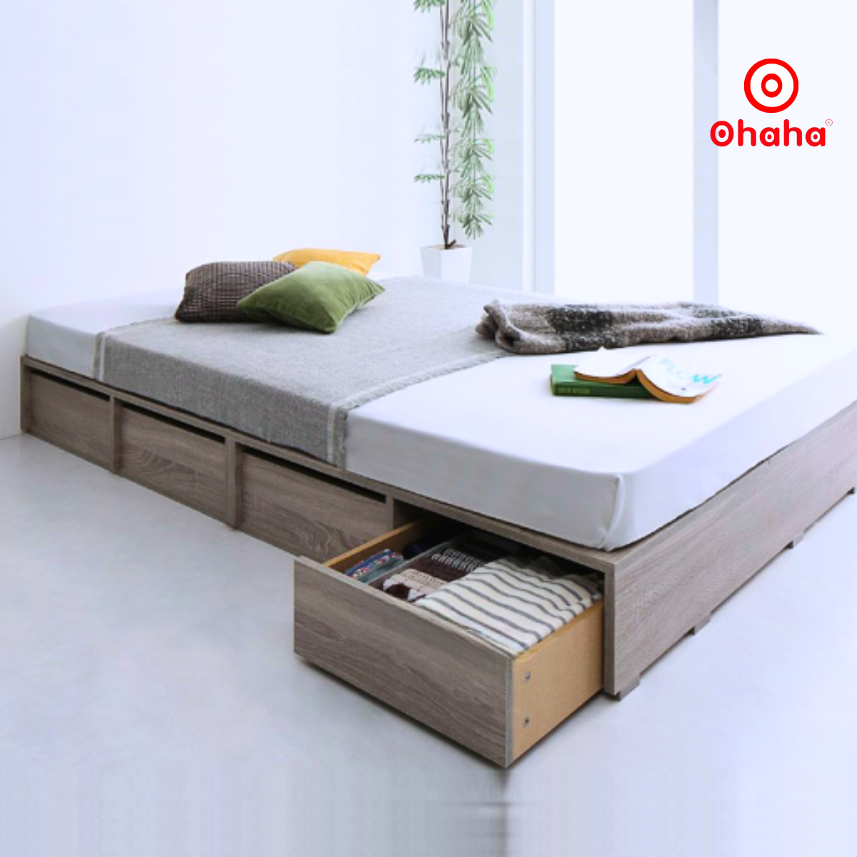 Tối giản nhưng không đơn điệu, Giường Ngủ Gỗ OHAHA Cao Cấp 4 Hộc Kéo OH050 - Kiểu Giường Hộp Chuẩn Bắc Âu được thiết kế theo phong cách Bắc Âu thời thượng. Thiết kế nhỏ gọn, trang nhã với gang Nâu trung tính tân cổ điển tô điểm cho không gian phòng ngủ nhẹ nhàng, tràn đầy sức sống.