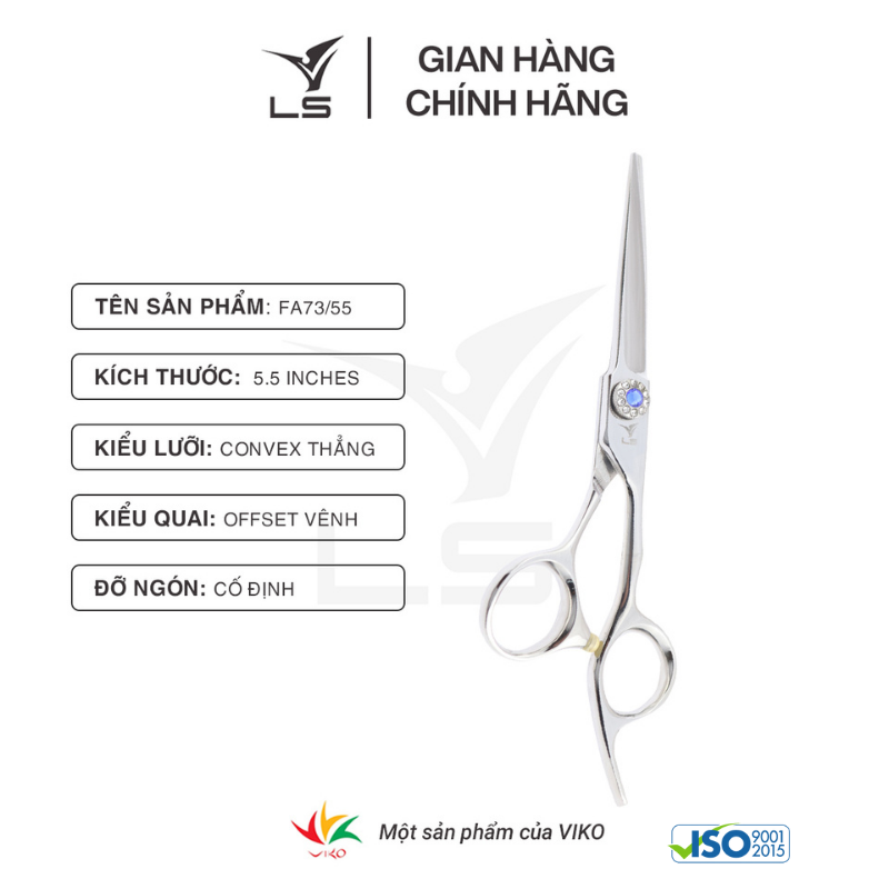 Kéo cắt tóc LS là một thương hiệu được sản xuất bởi Công ty TNHH Dụng cụ cắt Việt Hàn (Viko cutting tools Company limited) - đáp ứng đầy đủ các tiêu chuẩn quốc tế. Kéo LS thuộc dòng sản phẩm phổ thông, hướng tới đại đa số khách hàng trung bình tại các tỉnh thành trong cả nước. Với hệ thống bán hàng rộng khắp được xây dựng trong 14 năm phát triển, Kéo LS luôn nỗ lực phục vụ khách hàng một cách thuận tiện nhất. THÔNG TIN SẢN PHẨM KÉO CẮT TÓC LS FA73/5.5
