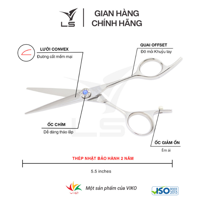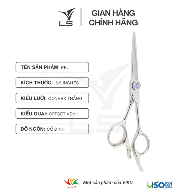 Kéo cắt tóc LS là một thương hiệu được sản xuất bởi Công ty TNHH Dụng cụ cắt Việt Hàn (Viko cutting tools Company limited) - đáp ứng đầy đủ các tiêu chuẩn quốc tế. Kéo LS thuộc dòng sản phẩm phổ thông, hướng tới đại đa số khách hàng trung bình tại các tỉnh thành trong cả nước. Với hệ thống bán hàng rộng khắp được xây dựng trong 14 năm phát triển, Kéo LS luôn nỗ lực phục vụ khách hàng một cách thuận tiện nhất. THÔNG TIN SẢN PHẨM KÉO CẮT TÓC LS PSO/5.5
