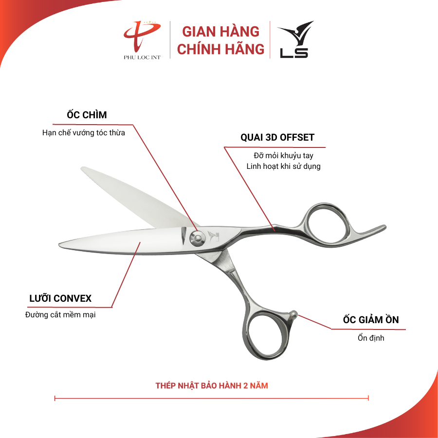 Với kiểu lưỡi cong và kích thước 6.0, sản phẩm rất phù hợp với các đường cắt chuốt (slide cut & slicing cut). Dòng kéo cắt tóc cao cấp VLS luôn đảm bảo chất lượng (cắt không chạy tóc). Sản phẩm được đánh bóng qua gần một trăm bước vì vậy rất bóng, mịn và sang trọng.