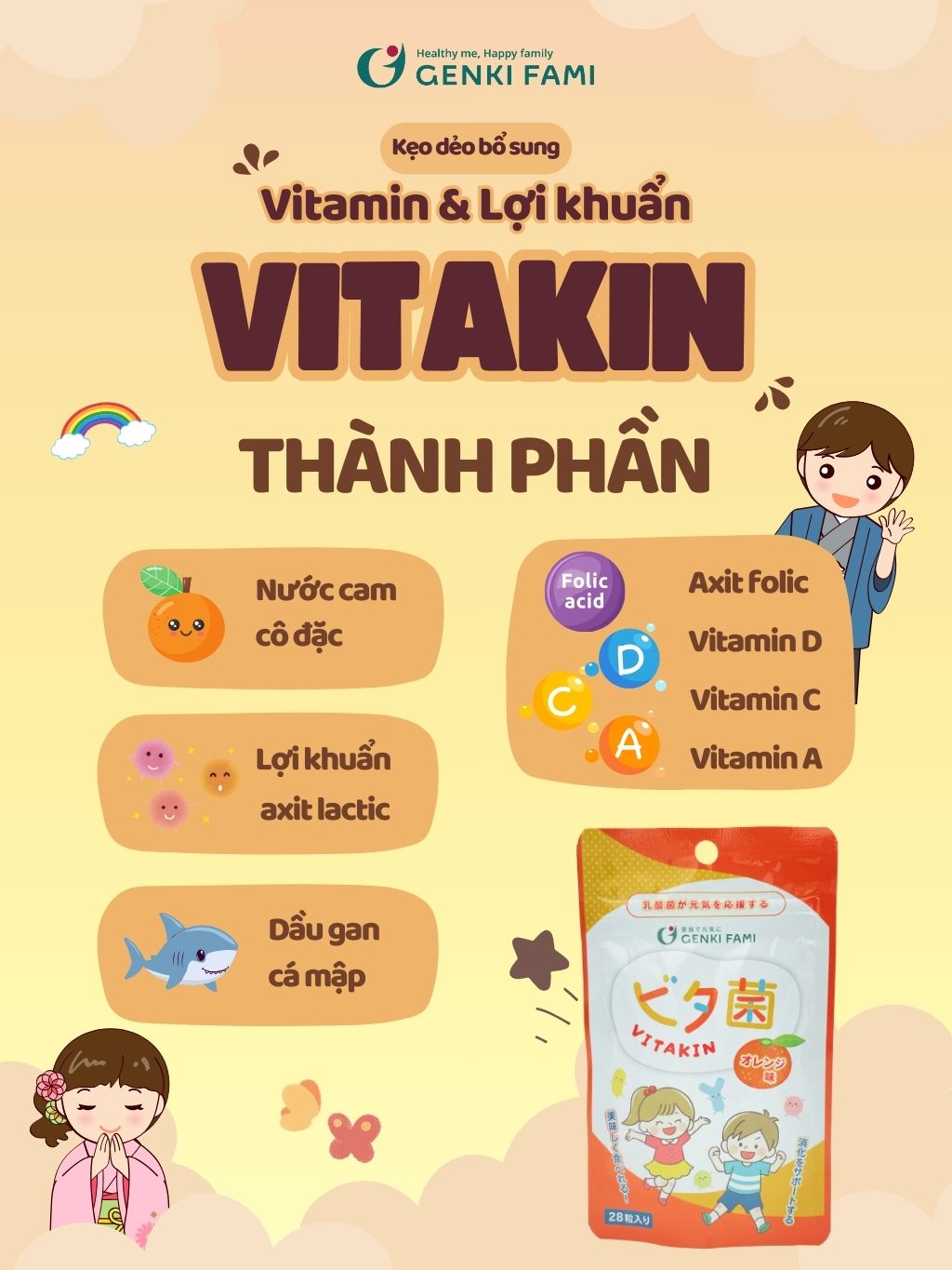 KẸO DẺO VITAKIN BỔ SUNG LỢI KHUẨN VÀ VITAMIN TỪ NHẬT BẢN