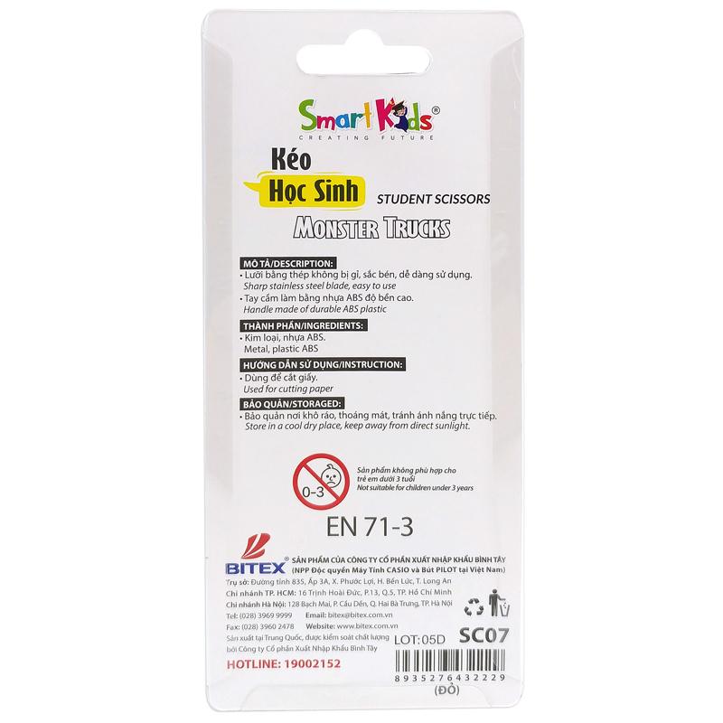 Kéo Học Sinh Monster Truck - Smart Kids SC07 - Màu Đỏ Kéo học sinh Smart Kids được làm từ những nguyên liệu cao cấp và nguyên chất, đã qua xử lý kỹ và an