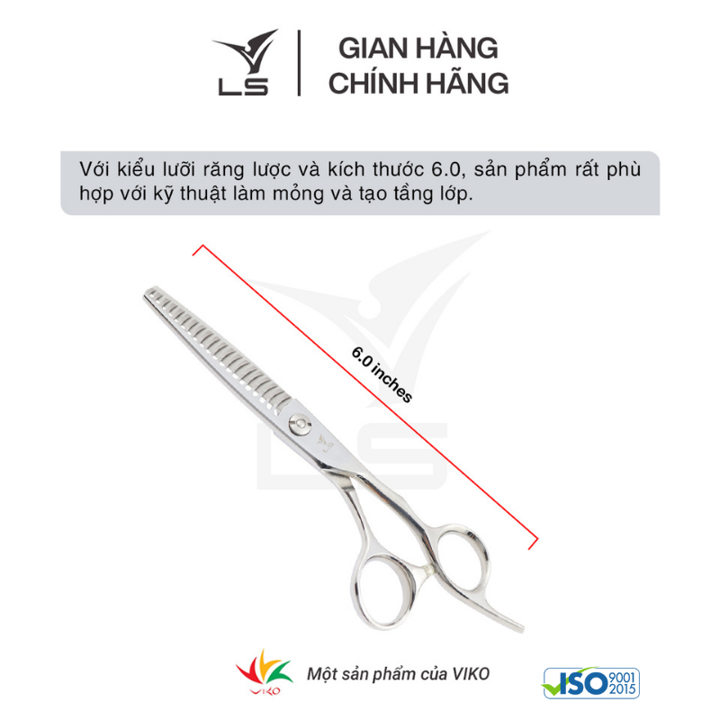 Với kiểu lưỡi thẳng và kích thước 6.0, sản phẩm rất phù hợp với các đường cắt thẳng (blunt cut). Dòng kéo cắt tóc cao cấp VLS luôn đảm bảo chất lượng (cắt không chạy
