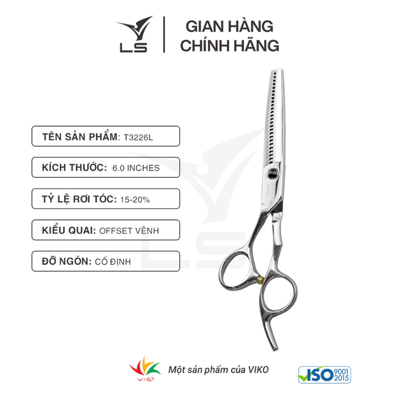 Mua tại TiktokKéo cắt tóc LS là một thương hiệu được sản xuất bởi Công ty TNHH Dụng cụ cắt Việt Hàn (Viko cutting tools Company limited) - đáp ứng đầy đủ các tiêu chuẩn quốc tế. Kéo LS thuộc dòng sản phẩm phổ thông, hướng tới đại đa số khách hàng trung bình tại các tỉnh thành trong cả nước. Với hệ thống bán hàng rộng khắp được xây dựng trong 14 năm phát triển, Kéo LS luôn nỗ lực phục vụ khách hàng một cách thuận tiện nhất. THÔNG TIN SẢN PHẨM KÉO TỈA TÓC OFFSET VÊNH LS T3226L