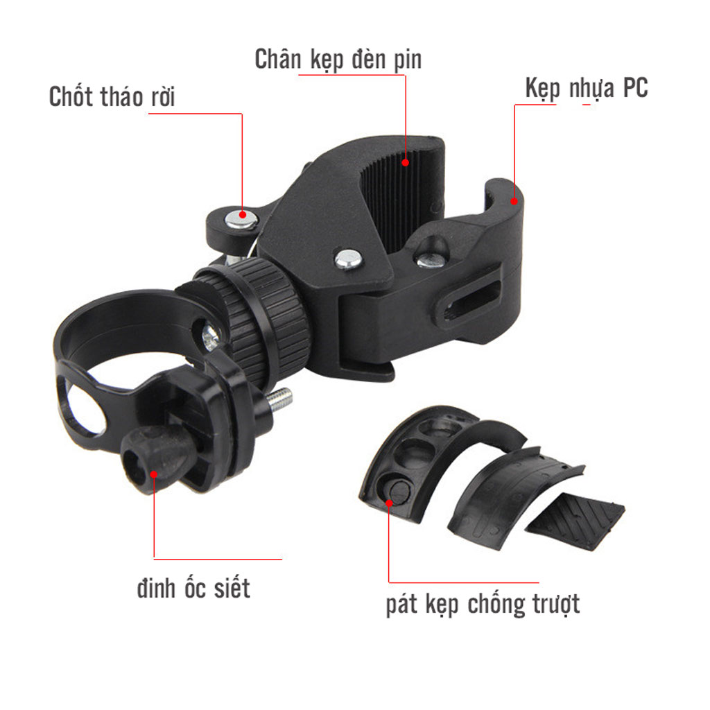 ✨Kẹp Gắn Đèn Pin ML10 Xe Đạp Gắn Ghi Đông Tay Lái Xoay 360 Độ Chắc Chắn Mai Lee (không kèm đèn pin)