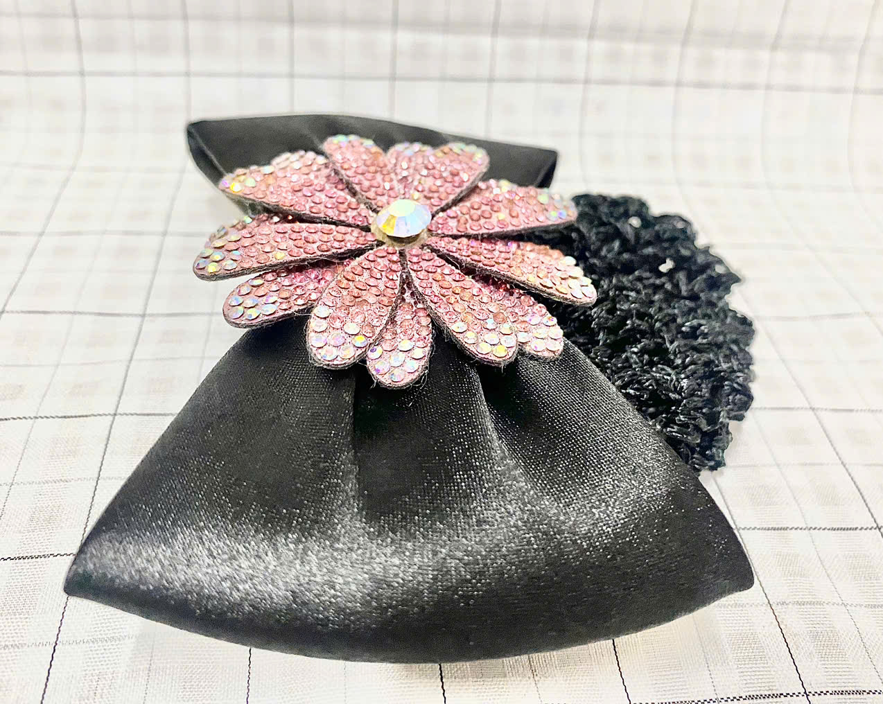 ✨KẸP TÓC BÚI LƯỚI MÀU ĐEN ĐÍNH HÌNH BÔNG HOA ĐÁ MÀU TÍM