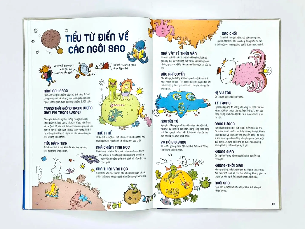 Vũ trụ là gì? Các hành tinh có tròn xoe không? E = mc2 có nghĩa là gì? Cuốn sách này trả lời rất nhiều câu hỏi mà chúng ta, bất kể là trẻ con hay người lớn, đều đặt ra về vị trí của Trái Đất trong Vũ trụ, về vụ nổ big bang, về nguồn gốc của các ngôi sao, về những hố đen hay các cuộc chinh phục không Những câu trả lời rất dễ hiểu đến từ một nhà báo khoa học kèm theo hình minh họa siêu dễ thuong của Pascal Lemaitre sẽ giúp độc giả hiểu thêm về lịch sử đáng kinh ngạc và bí hiểm thăm thẳm của Vũ trụ nơi chúng ta đang sống.