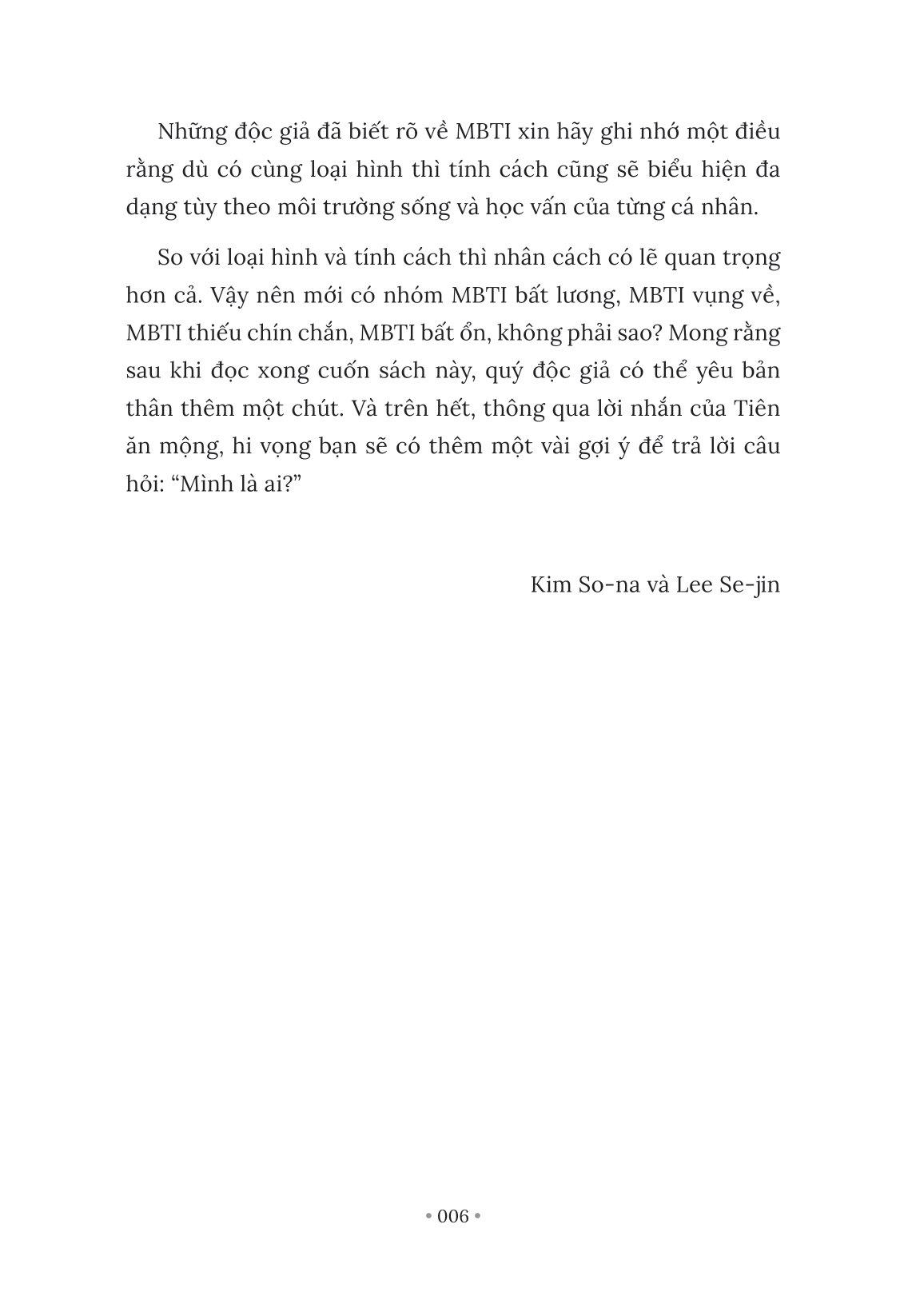Ngoài cung cấp kiến thức hữu ích, đây còn là một cuốn sách chữa lành, truyền tải những thông điệp tích cực đến từng loại hình tính cách trên cơ sở nền tảng MBTI. Chúng ta sẽ cùng với các Tiên ăn mộng đáng yêu tìm hiểu về những nhu cầu cơ bản và đặc trưng của cả 16 loại hình.