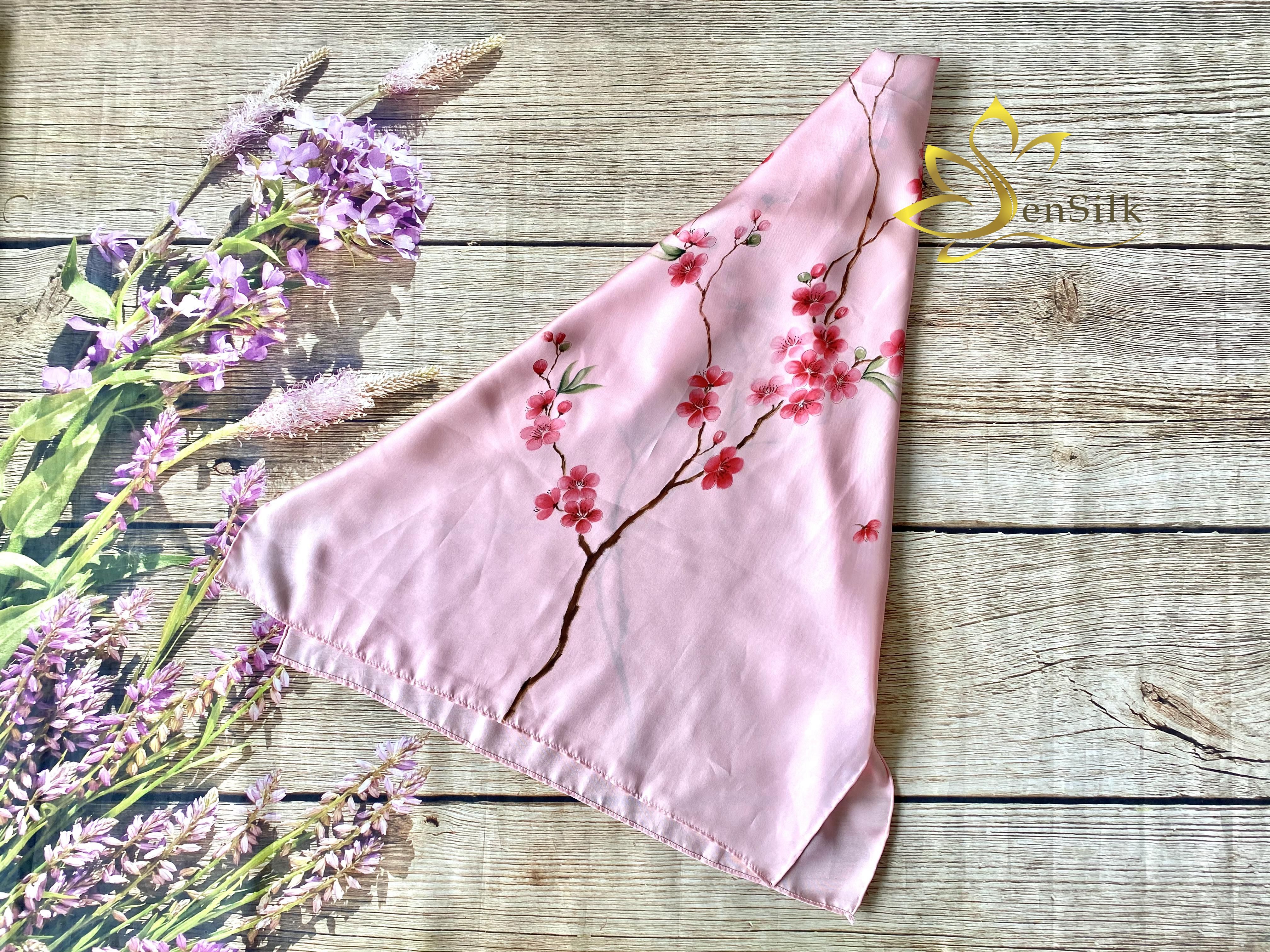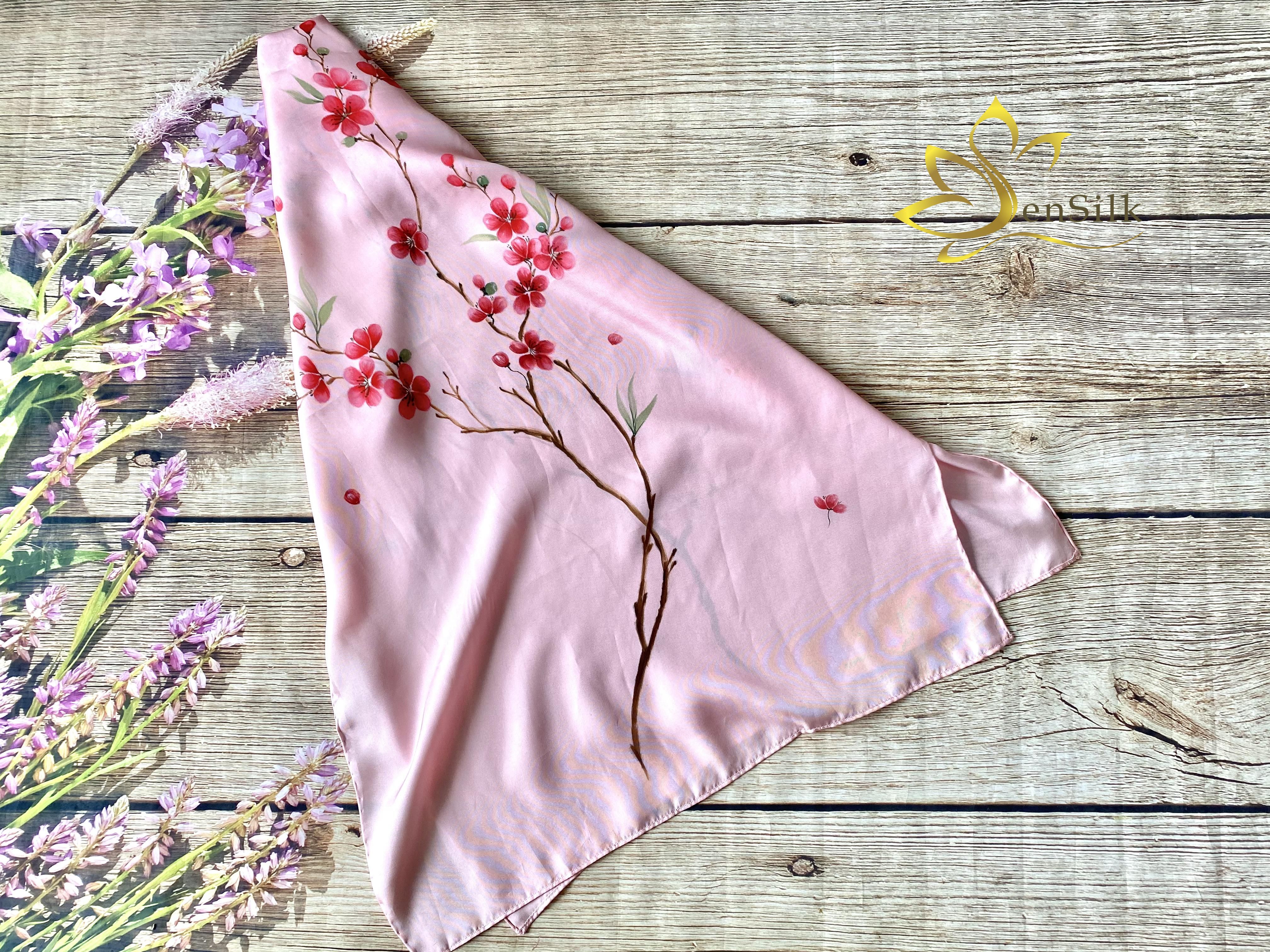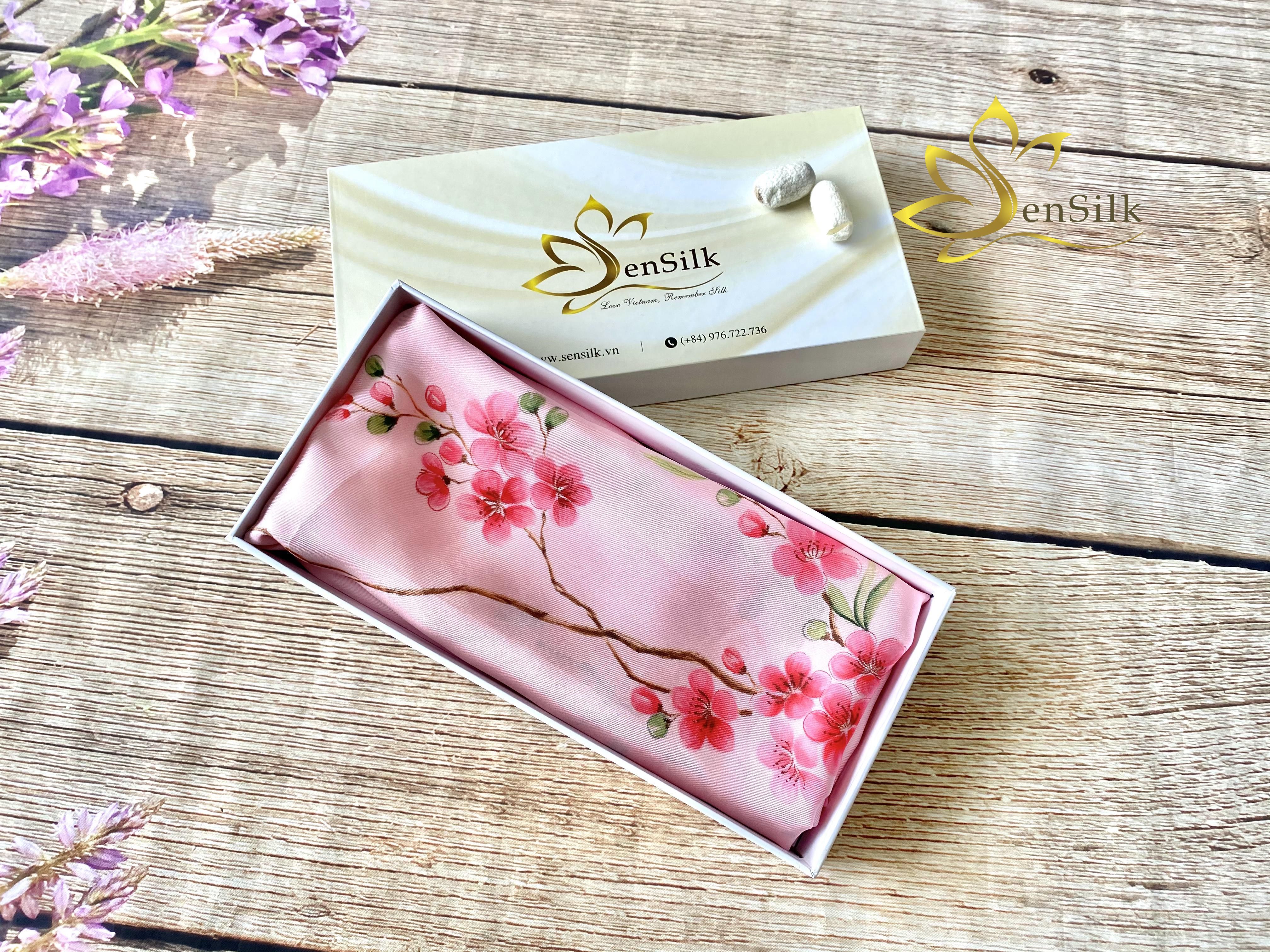 ✨Khăn Choàng Cổ Lụa Cao Cấp Vẽ Hoa Đào SenSilk 180x55cm, Tơ Lụa Bảo Lộc Cao Cấp, Khăn Quấn Cổ Thời Trang Cao Cấp