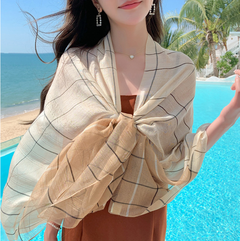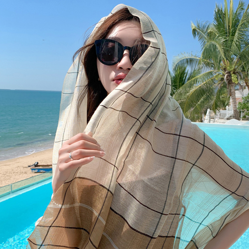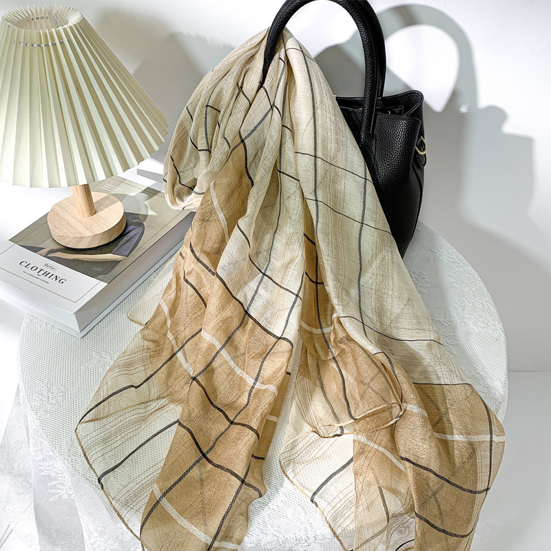 ✨Khăn Choàng Quàng Cổ Voan Lụa Kim Tuyến Cao Cấp Sọc Caro (Nhiều Màu)