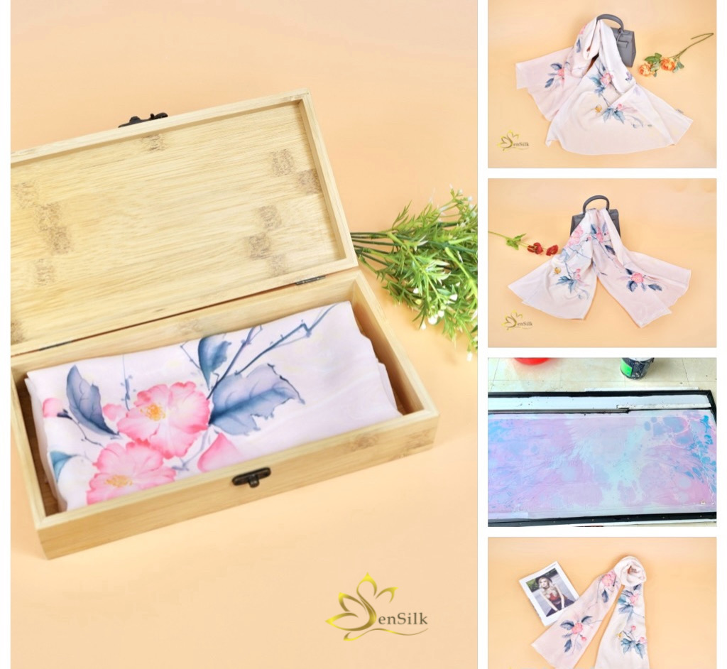 SenSilk – Lụa Tơ Tằm Thuần Việt kết hợp hài hoà giữa Lụa tơ tằm Bảo Lộc cao cấp với công nghệ in kỹ thuật số hiện đại tạo nên những chiếc khăn lụa in kỹ