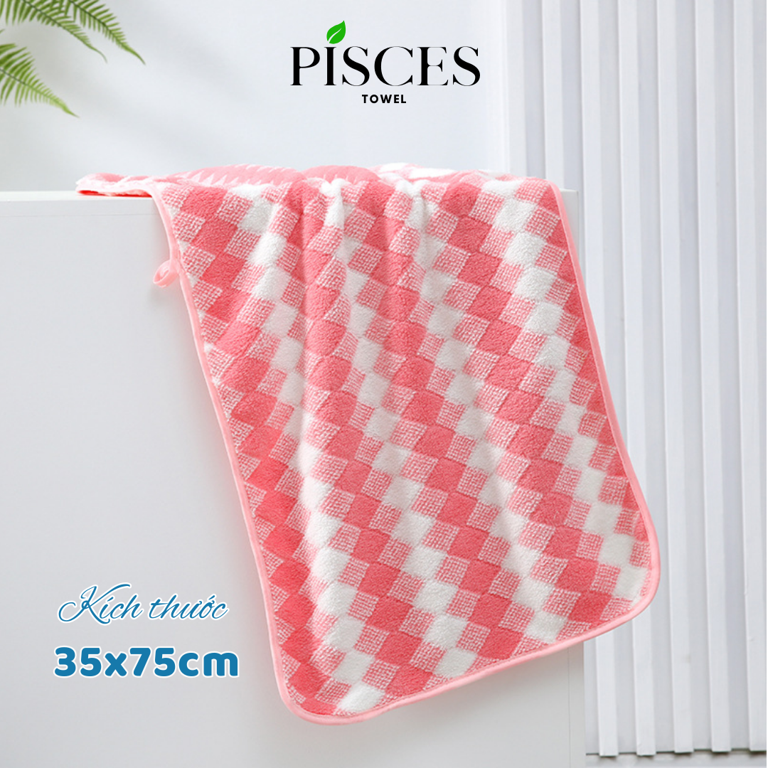 ✨Khăn Mặt PISCES TOWEL 35x75cm Caro Cotton Mềm Mại, Khăn Spa Yoga Gym Thể Thao Thấm Hút Mồ Hôi