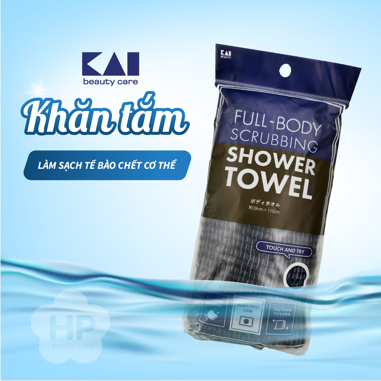 ✨Khăn Tắm Làm Sạch Tế Bào Chết Kai 78176 - 041HB1002 Vải Nylon Mềm (1 Gói 1 Chiếc)