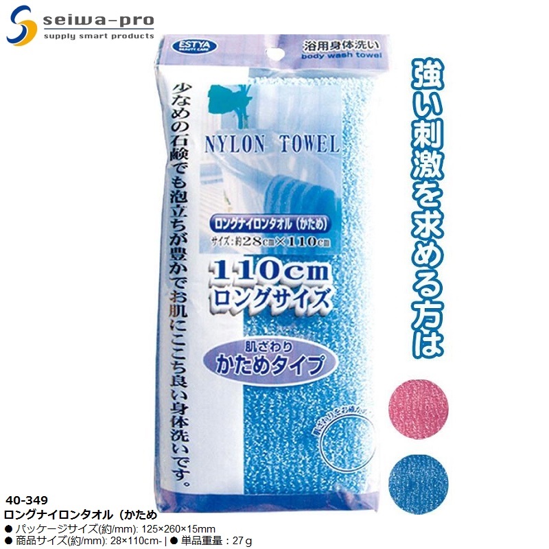 Khăn tắm nylon dài Seiwa-pro 28x110cm THÔNG TIN SẢN PHẨM Xuất xứ: Nhật Bản - Màu sắc: Màu hồng | Màu xanh - ❉ Mã hàng: ️ 40-349 : Loại cứng ️ 40-350 : Loại