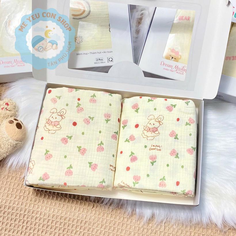 Set 2 khăn tắm Muslin 2 lớp 100% cotton organic mềm mại, thấm hút, an toàn cho làn da bé 100x100cm