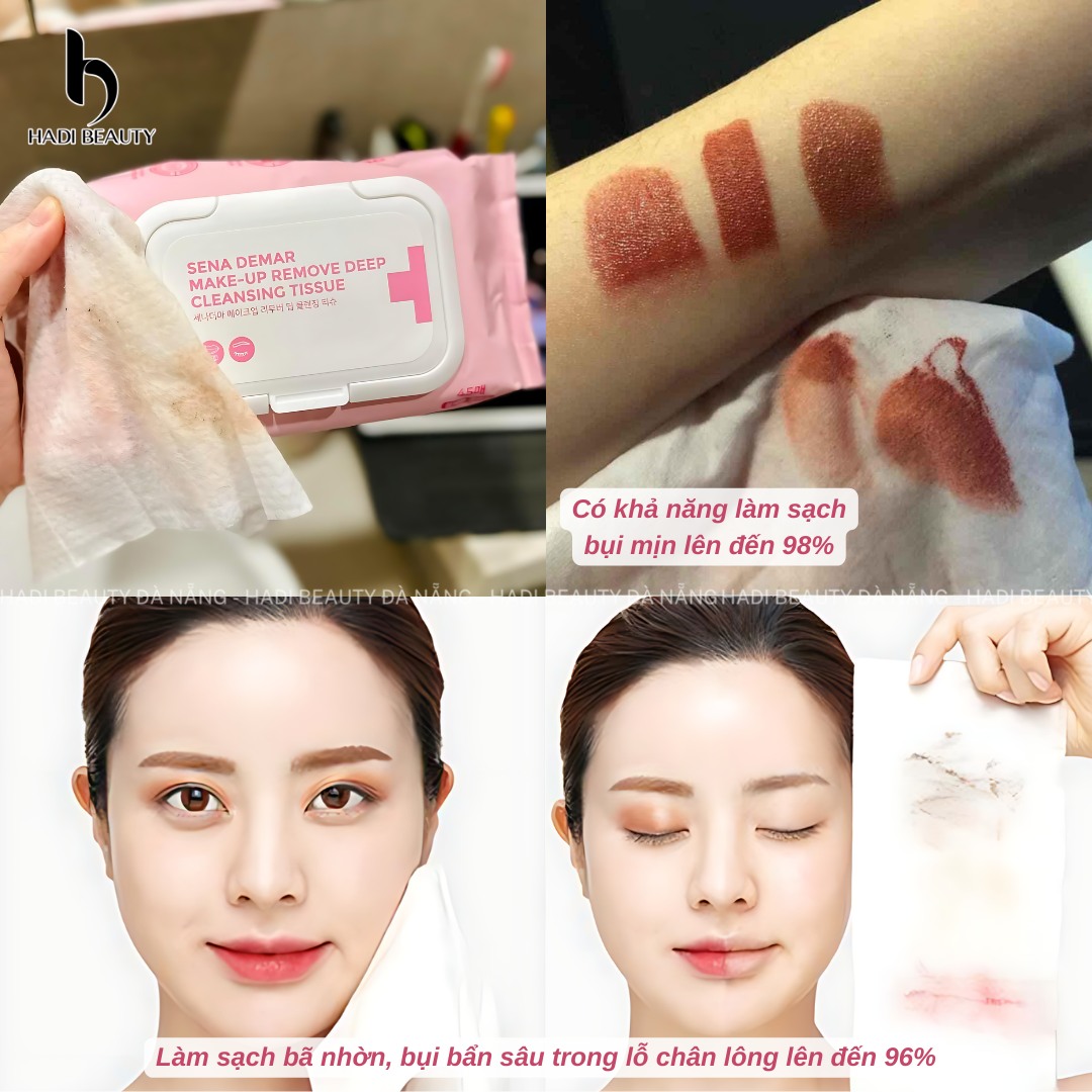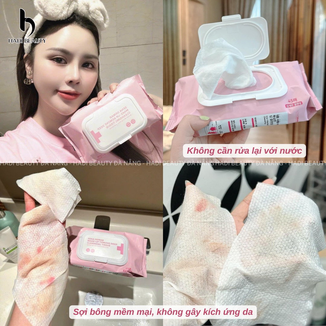 Khăn Tẩy Trang Thuần Chay 3 In 1 SenaDemar Hàn Quốc gói 45 miếng