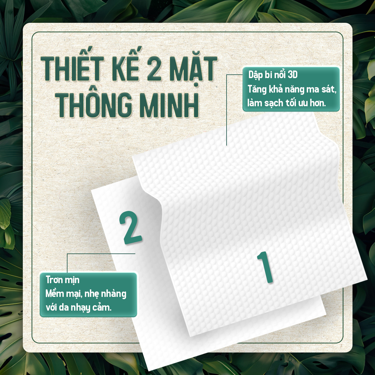 ️Gói lớn 60 khăn siêu tiết kiệm, khổ khăn cực lớn, có các hạt bi nổi 3D giúp làm bề mặt dễ dàng hơn nhưng vẫn giữ lại độ ẩm cần thiết, không gây khô ráp, khó chịu.