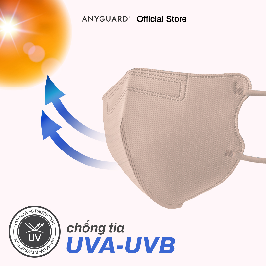 Khẩu Trang Nhập Khẩu Hàn Quốc ANYGUARD, Khẩu Trang  2D Solution 4 Lớp Ngăn Tia UV, An Toàn Cho Da Nhạy Cảm, Màu Creamy / Xám / Hồng (Túi 5 chiếc) được sản xuất 100% tại Hàn Quốc, cấu trúc 4 lớp, thiết...