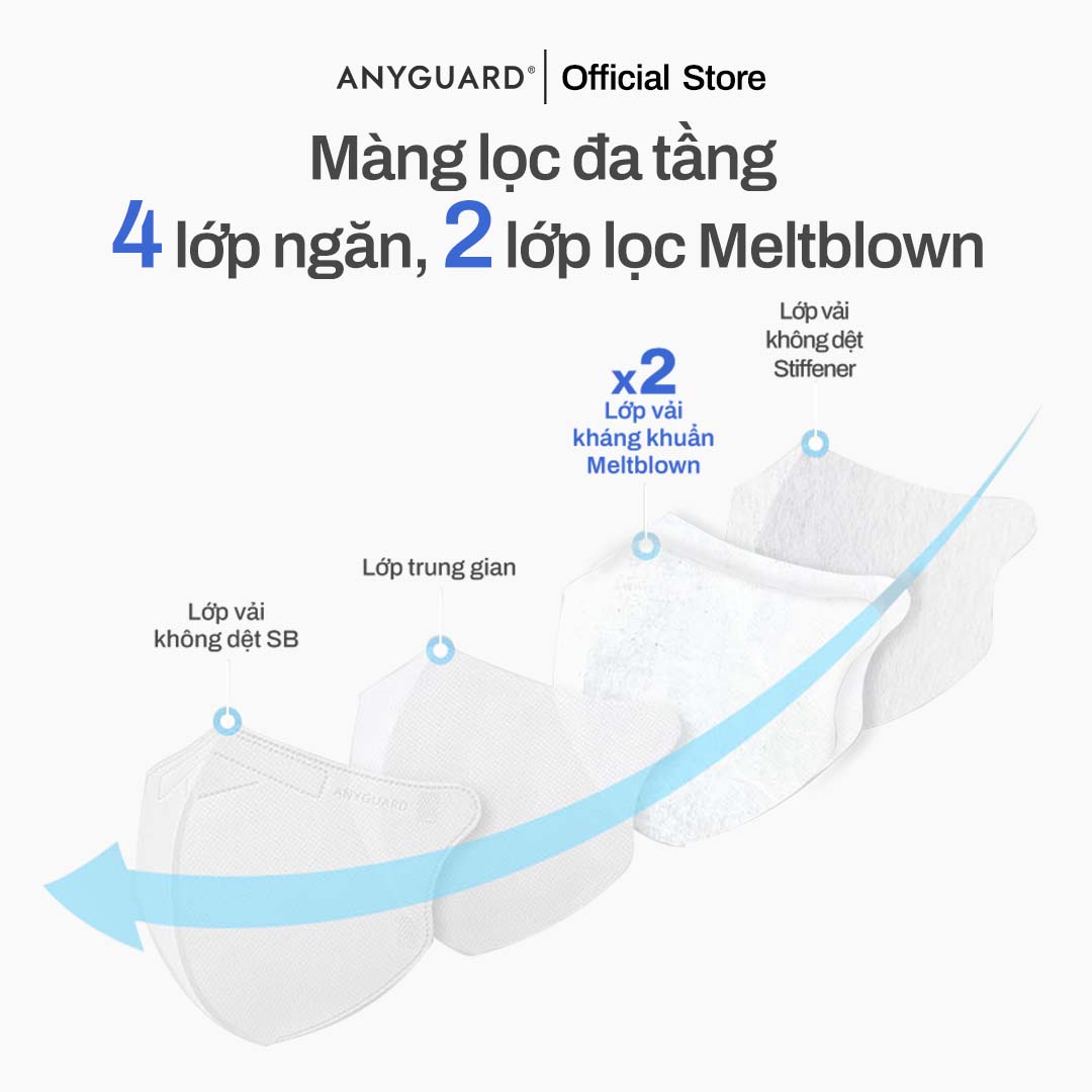 6 ƯU ĐIỂM VƯỢT TRỘI CHỈ CÓ Ở KHẨU TRANG 2D ANYGUARD MASK HÀN QUỐC - QUEO ĐEO SIÊU ĐÀN HỒI CHO NGƯỜI LỚN (HỘP 50 CÁI) - Lọc 99% vi khuẩn với 3 lớp