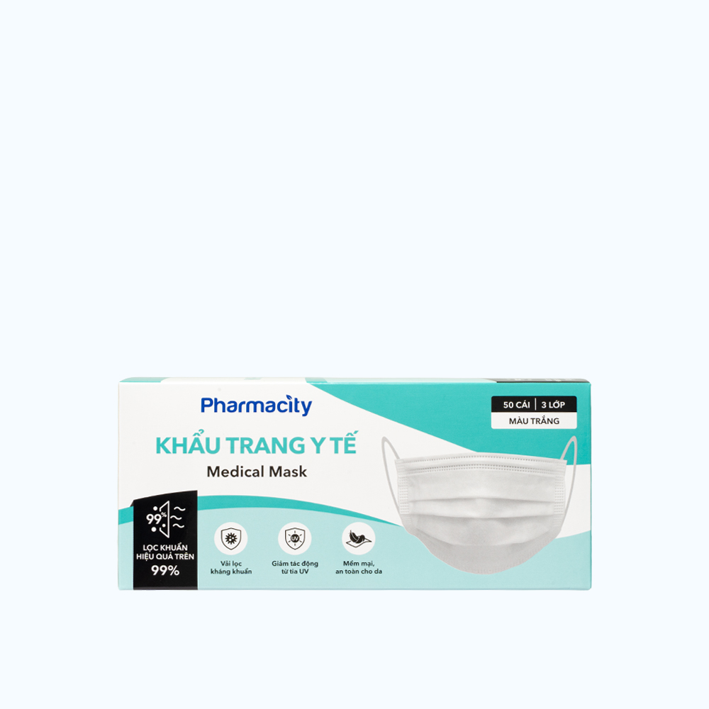 ✨Khẩu trang y tế 3 lớp Pharmacity (Hộp 50 cái) màu trắng