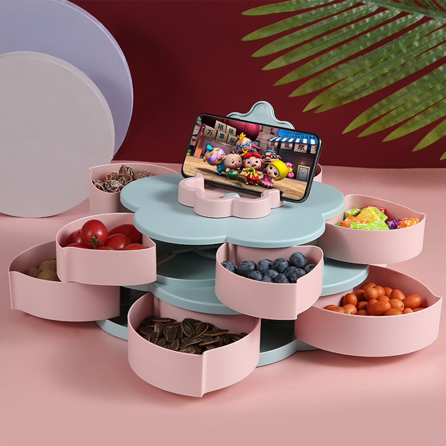 Khay hộp đựng Mứt Ngày Tết HÌnh Cánh Hoa Xoay 2 Tầng