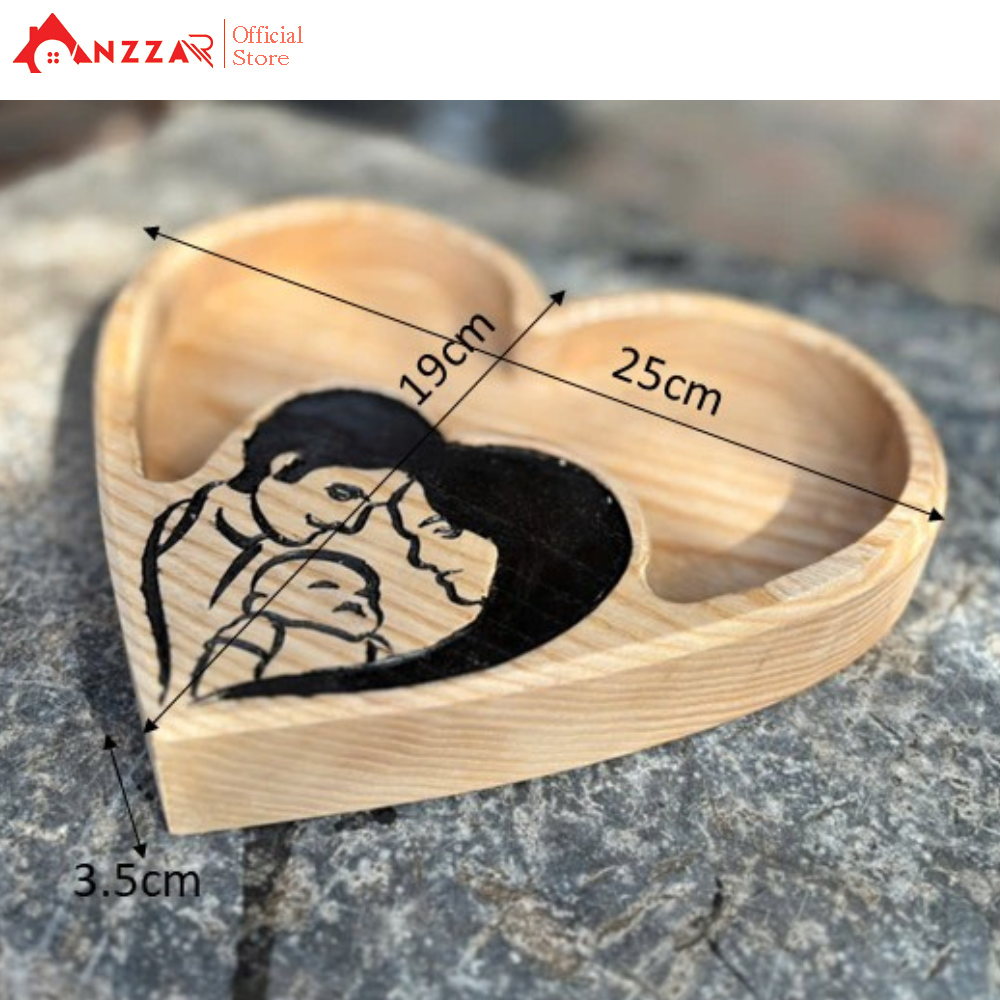 ✨Khay gỗ hình trái tim decor trang trí, khay đựng bánh kẹo mứt Tết/Trung thu bằng gỗ óc chó/tần bì nguyên khối cao cấp-04