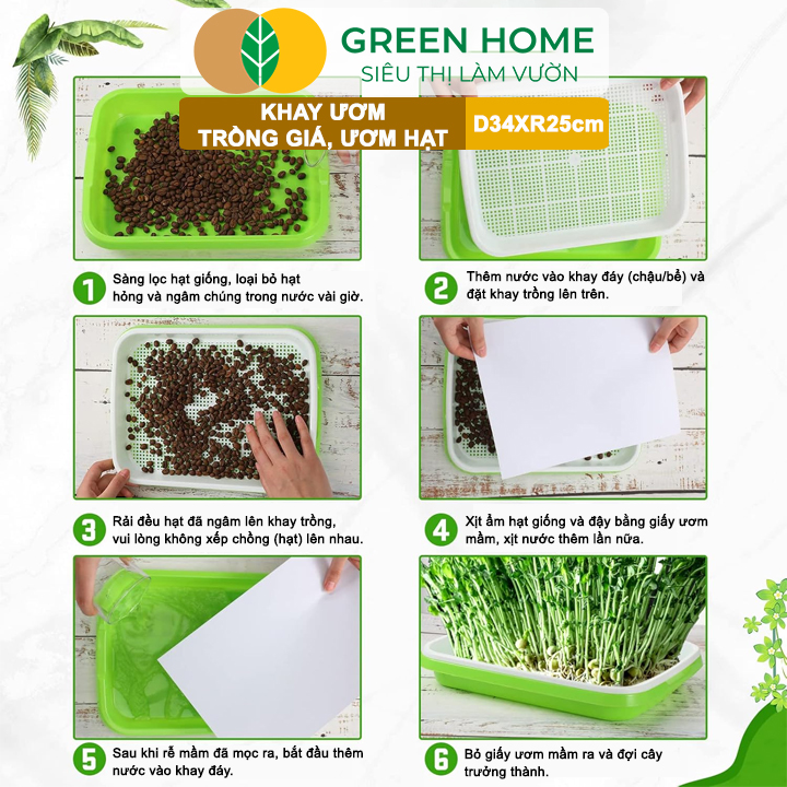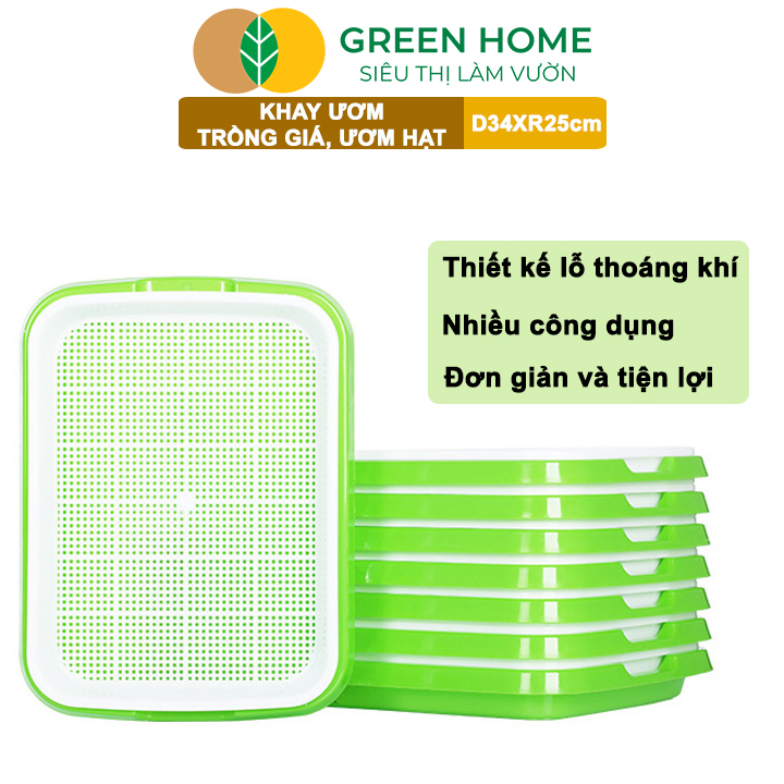 ✨Khay Trồng Rau Greenhome, D34xR25xC5cm, Nhựa Nguyên Sinh, An Toàn, Chuyên Trồng Giá, Rau Mầm Tại Nhà, Không Cần Đất