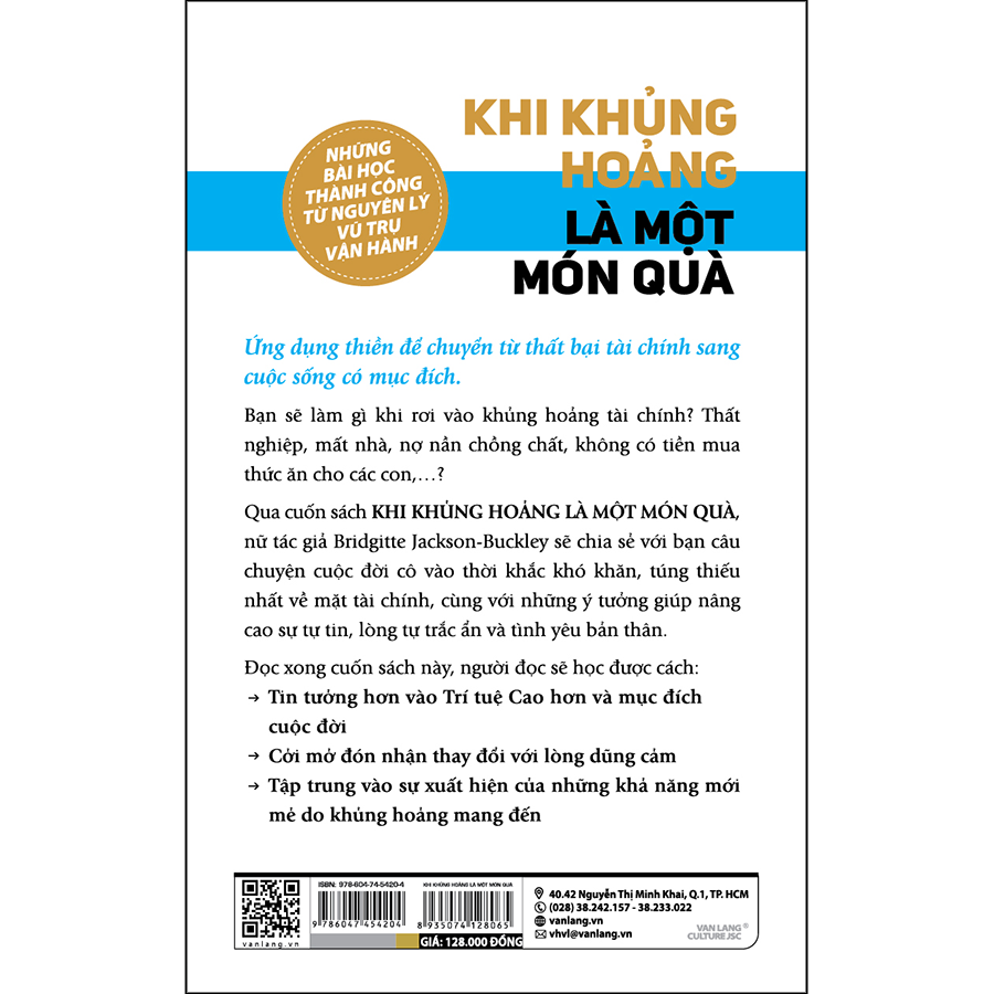 Ứng dụng thiền để chuyển từ thất bại tài chính sang cuộc sống có mục đích. Bạn sẽ làm gì khi rơi vào khủng hoảng tài chính? Thất nghiệp, mất nhà, nợ nần chồng chất, không có tiền mua thức ăn cho các con,…? Qua cuốn sách Khi khủng hoảng là một món quà, nữ tác giả Bridgitte Jackson-Buckley sẽ chia sẻ với bạn câu chuyện cuộc đời cô vào thời khắc khó khăn, túng thiếu nhất về mặt tài chính, cùng với những ý tưởng giúp nâng cao sự tự tin, lòng tự trắc ẩn và tình yêu bản thân. Đọc xong cuốn sách này, người đọc sẽ học được cách: Tin tưởng hơn vào Trí tuệ Cao hơn và mục đích cuộc đời Cởi mở đón nhận thay đổi với lòng dũng cảm Tập trung vào sự xuất hiện của những khả năng mới mẻ do khủng hoảng mang đến