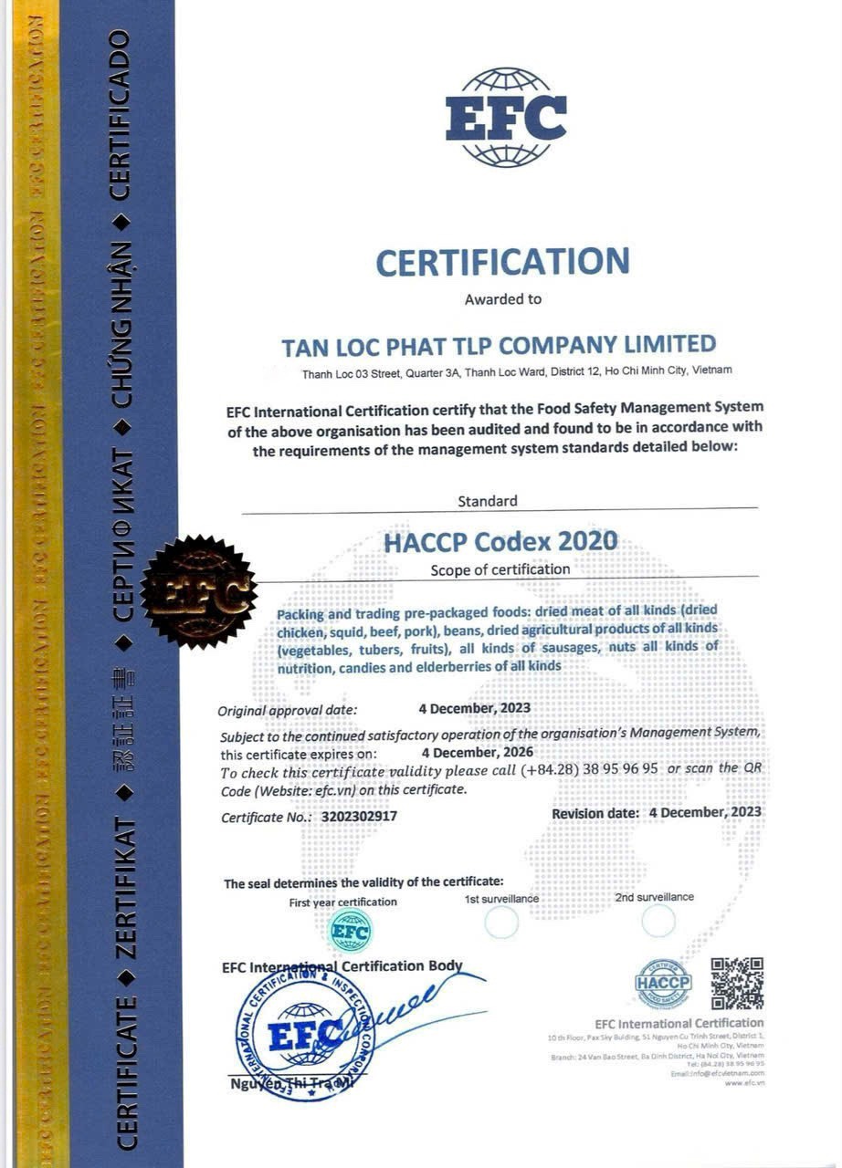 Xuất xứ: Việt Nam Hạn sử dụng: In trên bao bì Sản phẩm có giấy chứng nhận an toàn vệ sinh thực phẩm. Hướng dẫn sử dụng: Dùng trực tiếp, không cần chế biến. Hướng