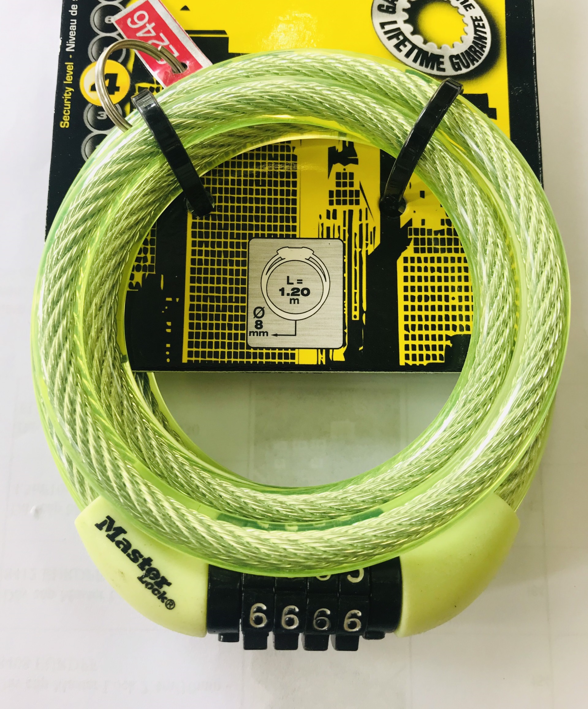 KHÓA DÂY MASTER LOCK 8143 KHÔNG ĐỔI MÃ SỐ ĐƯỢC, DÙNG MÃ SỐ MẶC ĐỊNH CỦA NHÀ SẢN XUẤT DÂY CÁP DÀI 1.2M TIỆN LỢI CHO VIỆC KHÓA XE