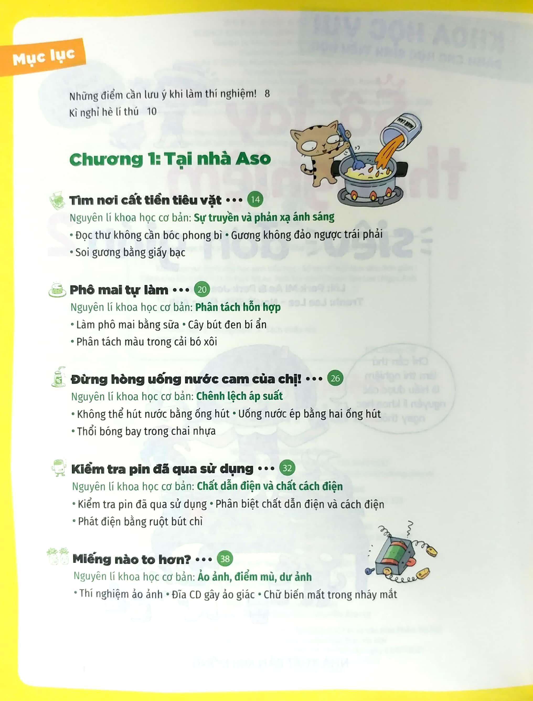 Mỗi khi nhắc đến cụm từ “thí nghiệm khoa học”, mọi người thường cảm thấy e ngại vì nghĩ rằng đó là một hoạt động phức tạp và khó khăn, chỉ có thể được thực hiện ở trong phòng thí nghiệm với sự chuẩn bị kĩ càng. Thế nhưng, bạn có biết rằng khoa học luôn ẩn giấu trong những gì chúng ta nhìn thấy và chạm vào mỗi ngày? Chỉ cần quan sát những điều nhỏ bé với tinh thần học hỏi và niềm vui khám phá, bạn sẽ nhận ra rằng các nguyên lí khoa học không hề cao siêu hay xa vời, chỉ là từ trước đến nay bạn vẫn chưa để ý đến chúng mà thôi. Hãy cùng cô bạn Aso thực hiện những thí nghiệm đơn giản đến không ngờ và trở thành vị Vua trong vương quốc khoa học gần gũi mà vẫn tràn ngập bao điều thú vị nhé!