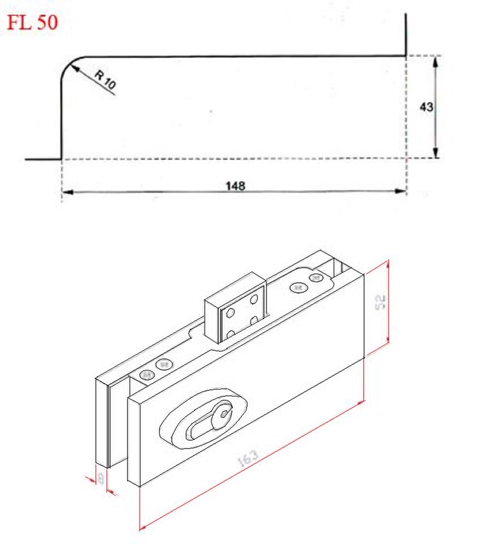 Khóa sàn gắn cho cửa kính cường lực bản lề sàn. Loại khóa này có thể gắn cho các cửa kính có độ dày 10ly hoặc 12ly.