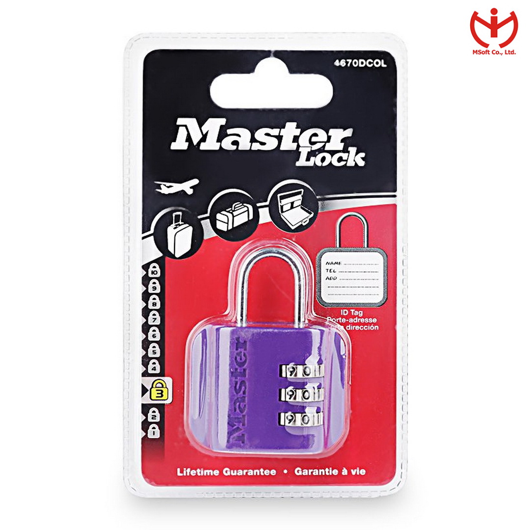 KHÓA SỐ MASTER LOCK 4670 DCOL KHÓA 3 SỐ, MẬT MÃ CÓ THỂ THAY ĐỔI DỄ DÀNG MẶT SAU KHÓA CÓ NHÃN GHI THÔNG TIN CÓ NHIỀU MÀU, GIAO MÀU NGẪU NHIÊN ỨNG